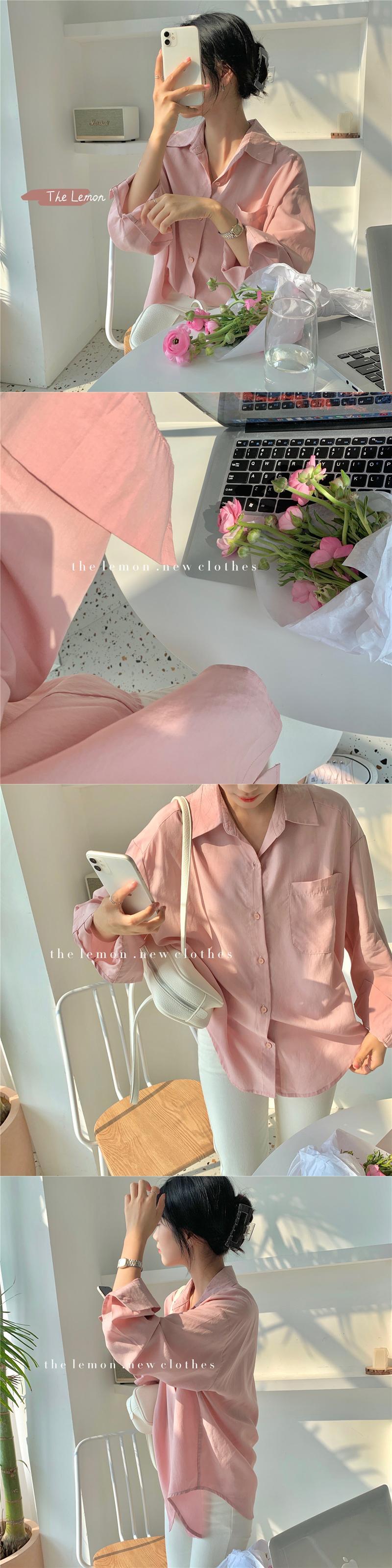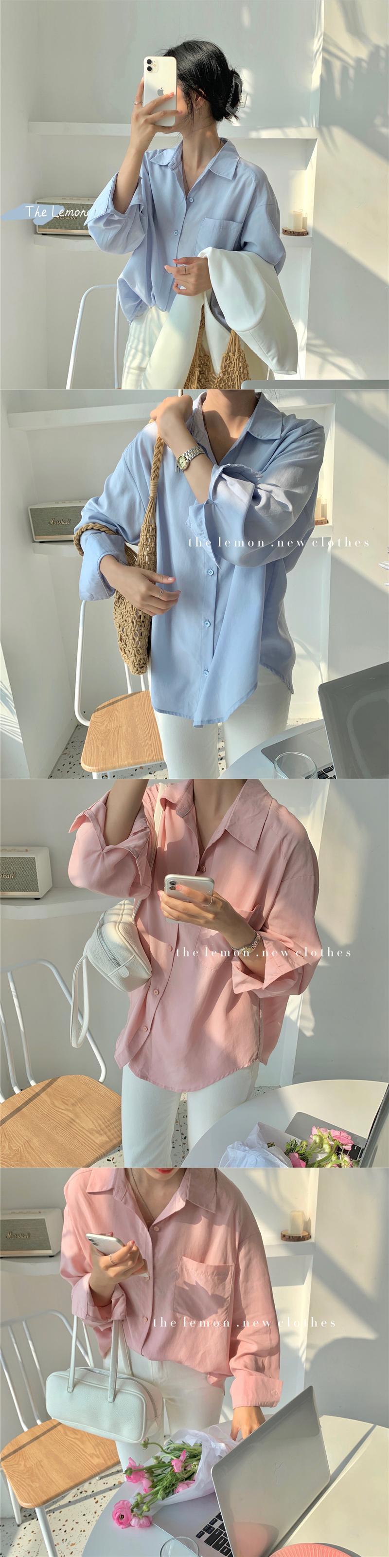 カラーポケットシャツ ベーシックルーズ長袖スリーブトップス レディース ロング ビッグFスモールZ韓国41153656433