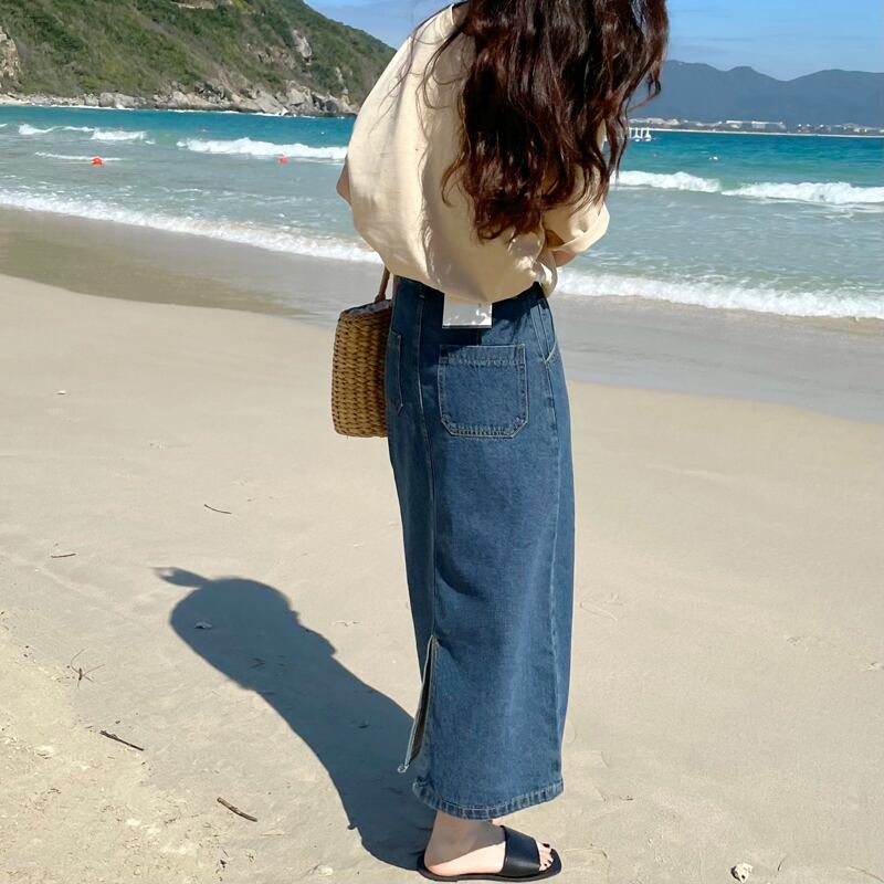 バックスリットスカート ハイウェストウェスト薄手Aライン ビッグFスモールZ韓国90909477232