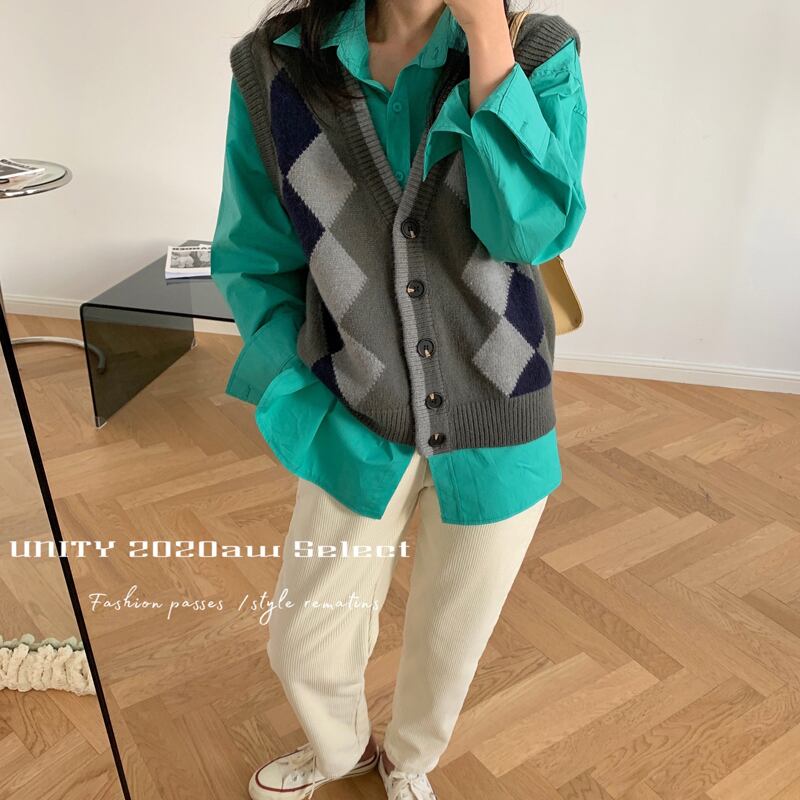 スタンダードカラーウールニットカジュアルウィンター レトロ 冬物 ビッグFスモールZ韓国76291751921