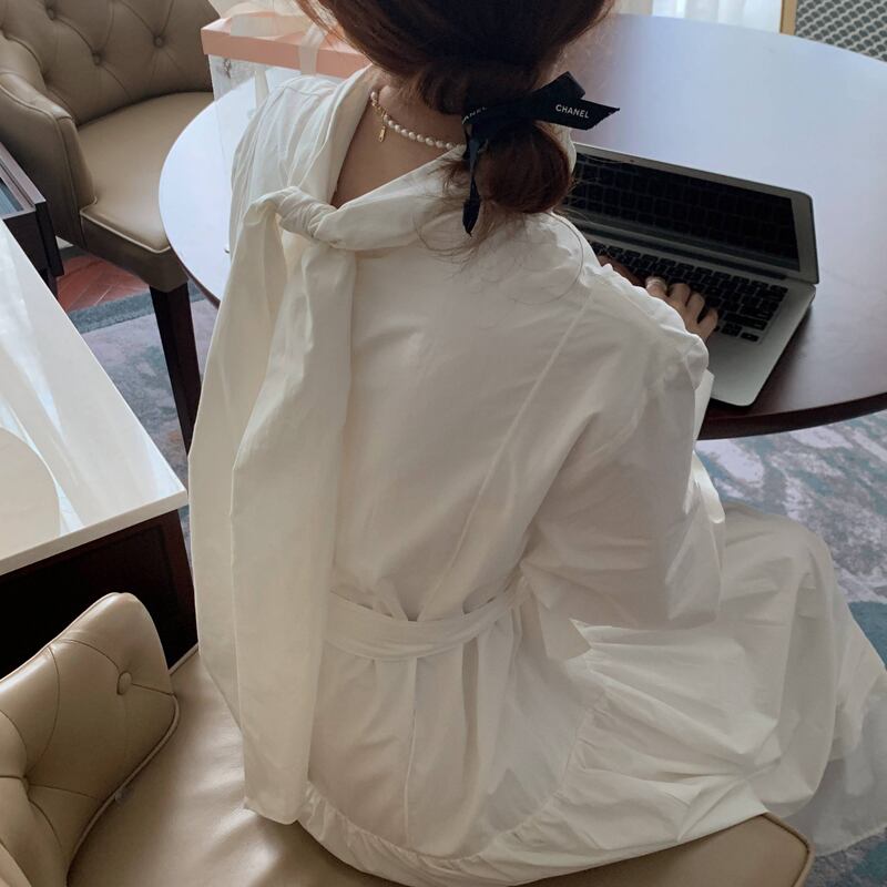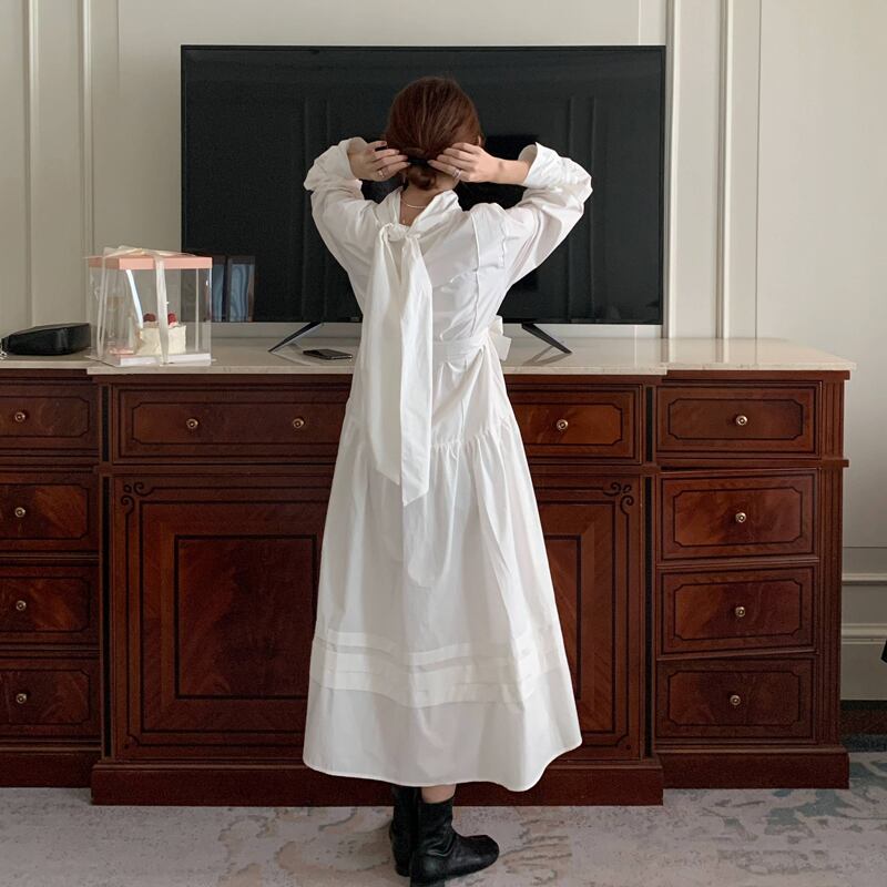 スタンダードバックリボンホワイトスプリング レトロ 春物 ビッグFスモールZ韓国99126043774