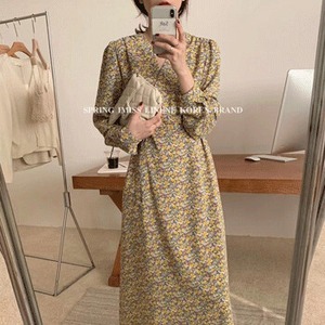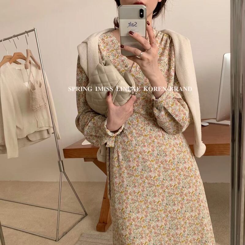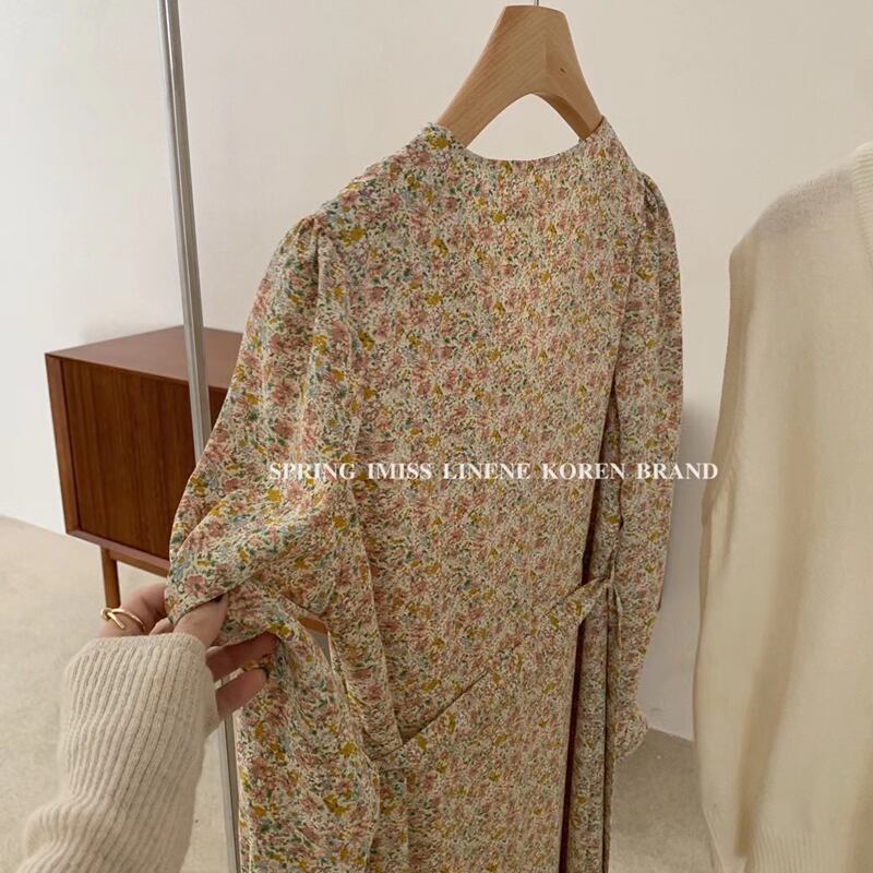 クロスVネックフローラルスカート ドレス スプリングレディース ロング 春物 花柄 ビッグFスモールZ韓国28125215089