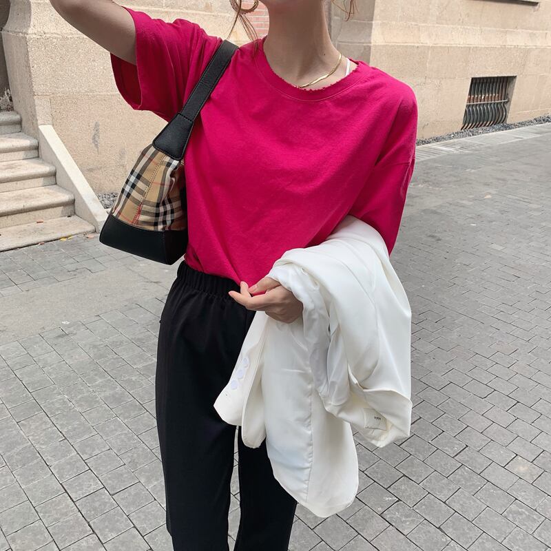 スリットカラー半袖スリーブルーズTシャツ トップス レディース ショート ハーフスリーブ ピュア ビッグFスモールZ韓国854609120