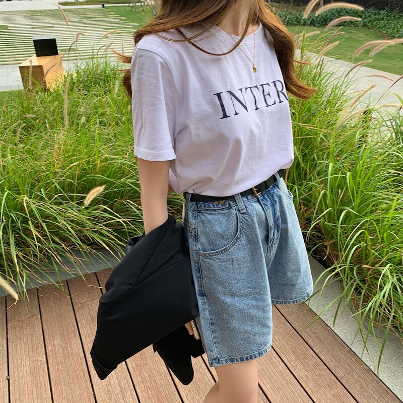 ハイウェストジーンズ ルーズ薄手パンツ スタンダードショーツ レディース レトロ ブルマー ビッグFスモールZ韓国49734216471