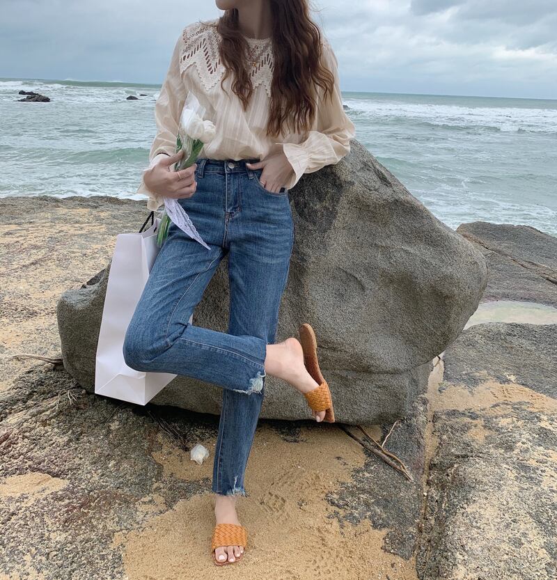パンツ ハイウェストウェストジーンズ スプリングレディース 春物 ビッグFスモールZ韓国20539324117