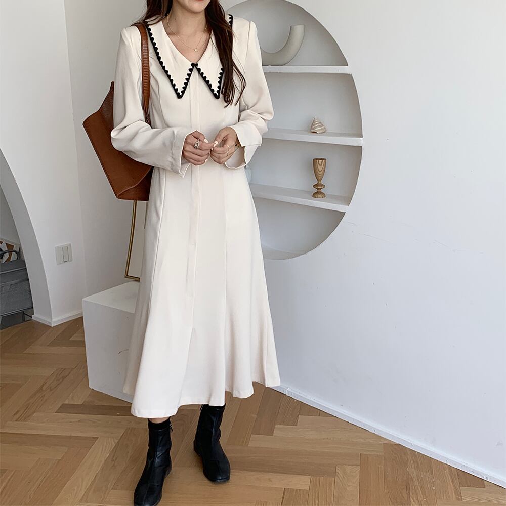 カラードレス 薄手長袖スリーブスプリングスカート レディース ロング 春物 ビッグFスモールZ韓国70183187411
