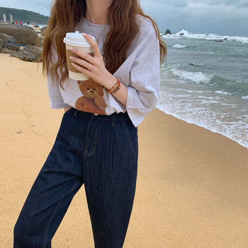 薄手ダークジーンズ ルーズパンツ ハイウェストレディース ビッグFスモールZ韓国86228378547