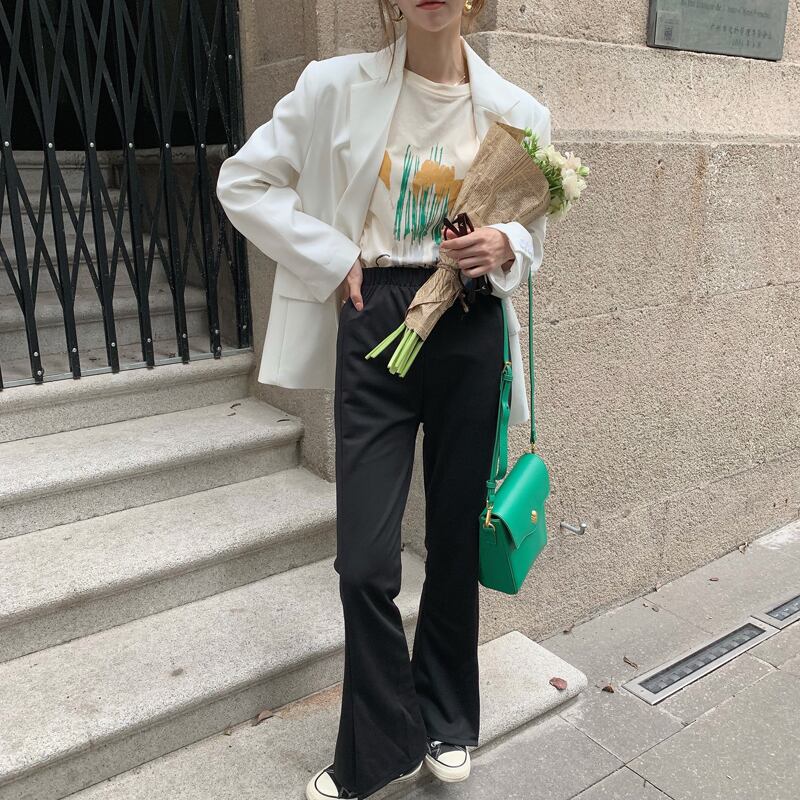 薄手ロングスリットパンツ ストレッチウェストブラックカジュアルレディース レッド エラスティック 伸縮 ビッグFスモールZ韓国30820164970