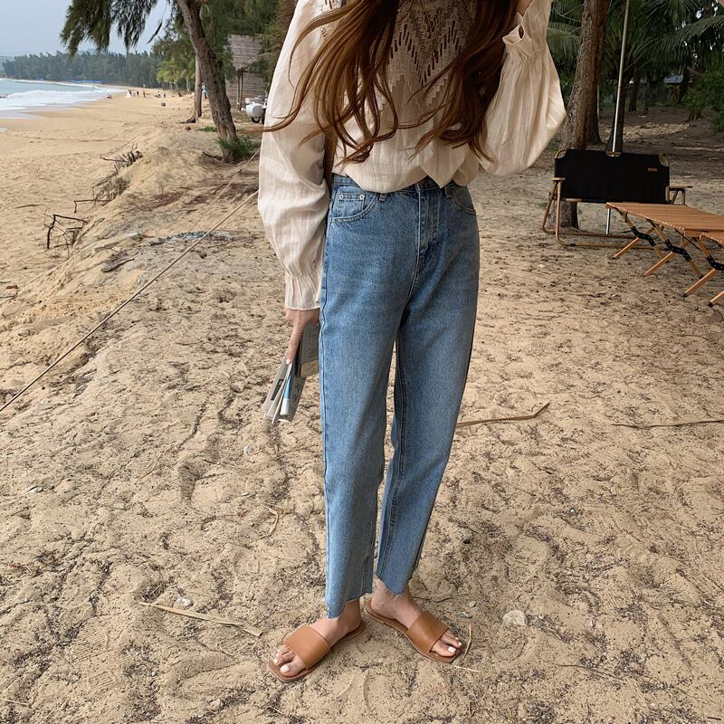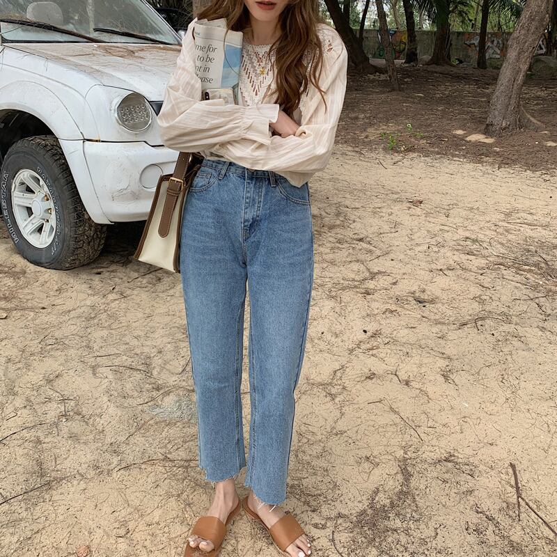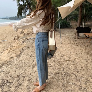 クロップドハイウェストパンツ 薄手スプリングジーンズ レディース 春物 ビッグFスモールZ韓国15562980691