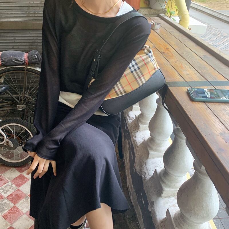 ラウンドネックニット ベーシックシャツ トップス レディース Oネック ビッグFスモールZ韓国94328697156