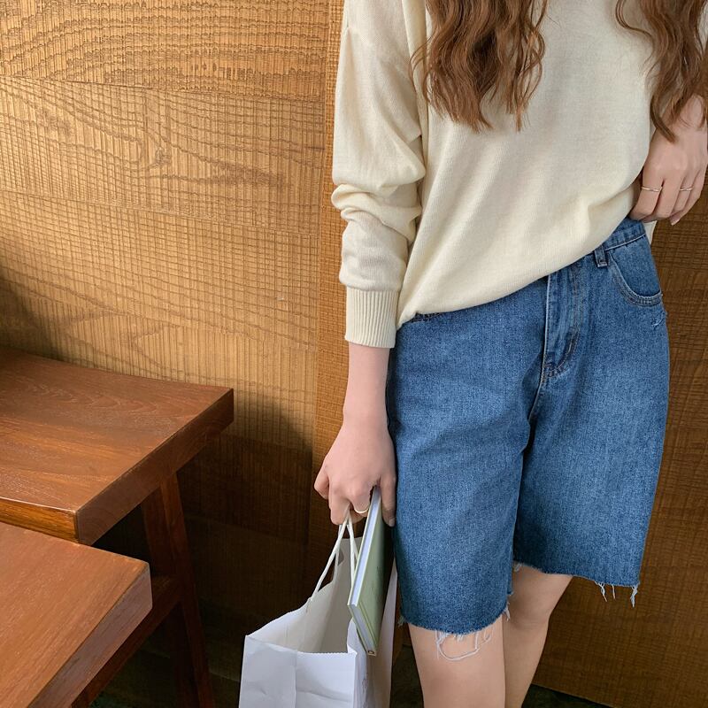 スタンダードパンツ ワイドレッグショーツ ウェスト薄手ジーンズ レディース レトロ ブルマー ワイドパンツ ビッグFスモールZ韓国71633779232
