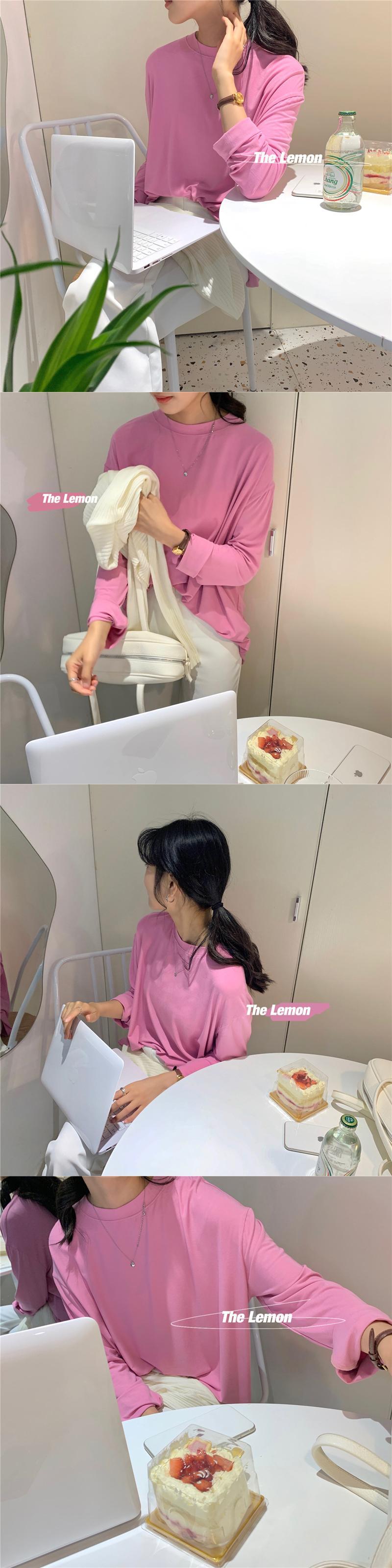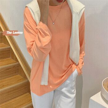 ラウンドネック長袖スリーブカラールーズTシャツ トップス レディース ロング Oネック ビッグFスモールZ韓国44016814817