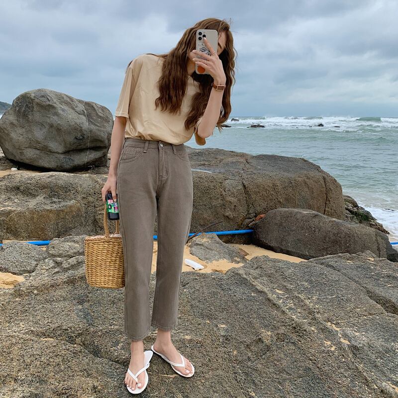 カラーラインスタンダード薄手スプリングジーンズ レディース レトロ 春物 ビッグFスモールZ韓国65487407001