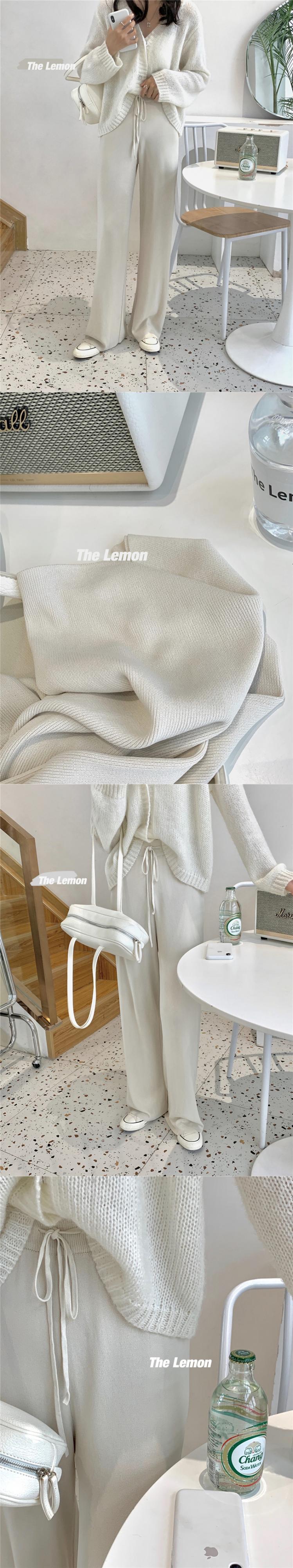 ニットパンツ ハイウェストウェストワイドレッグルーズカジュアルレディース レース ワイドパンツ シルク レースアップ ビッグFスモールZ韓国6250116188