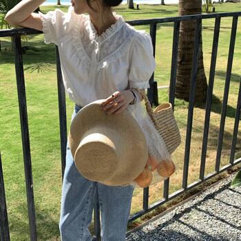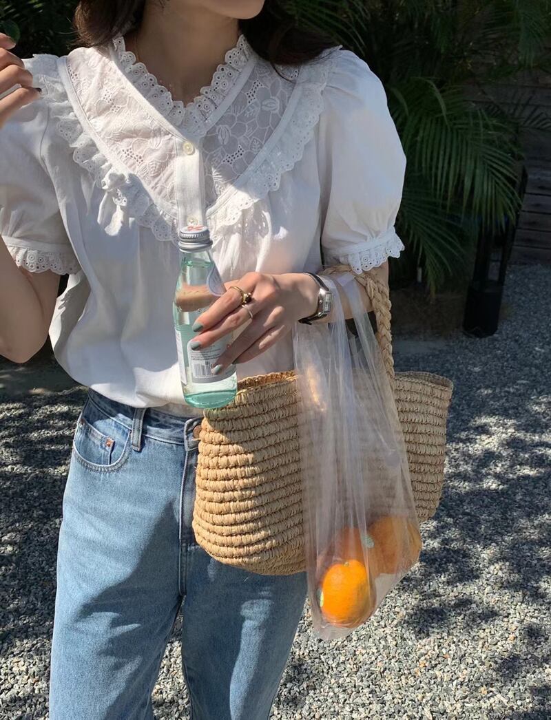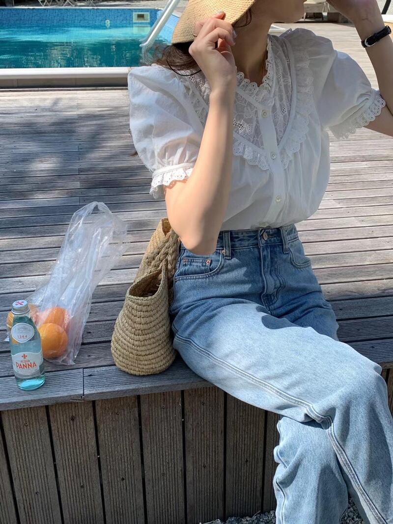 スタンダードスタイルレースシャツ サマー半袖スリーブトップス レディース ショート レトロ ハーフスリーブ 夏物 ビッグFスモールZ韓国49363376943