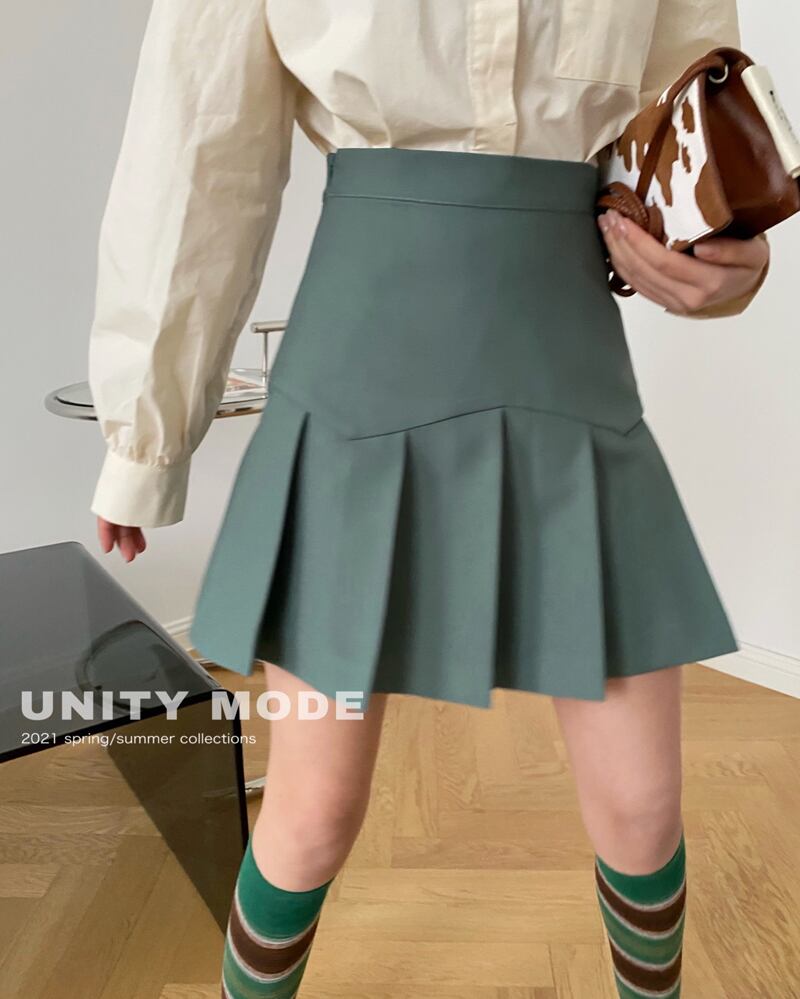 スタンダードプリーツスカート ハイウェストウェストAライン薄手ショートソリッド カラー レトロ ソリッドカラー ビッグFスモールZ韓国97535769121