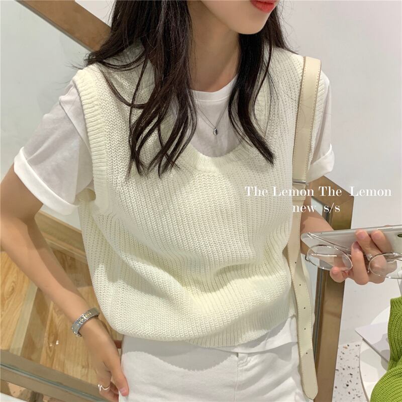 カラーニットVネックソリッド レディース ソリッドカラー ビッグFスモールZ韓国97574459660