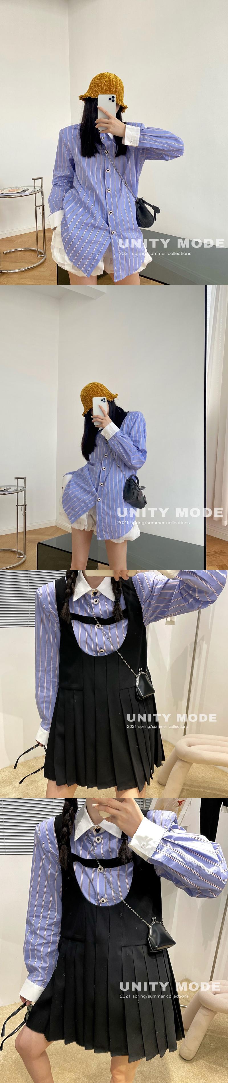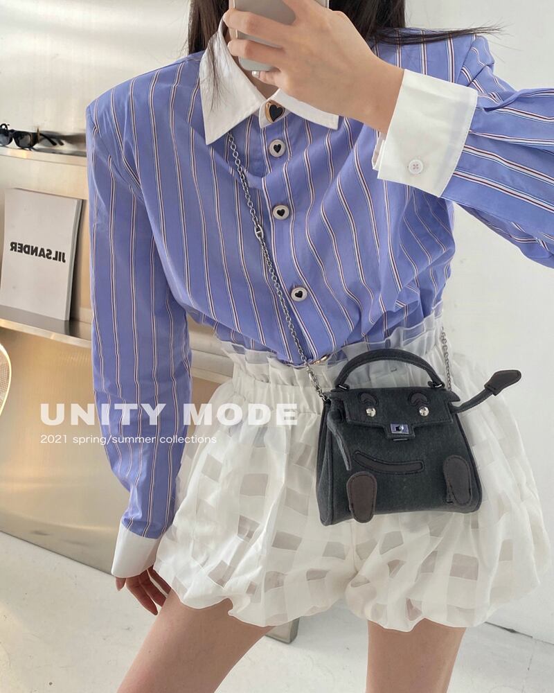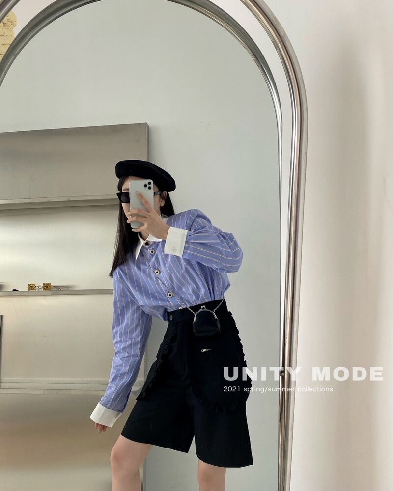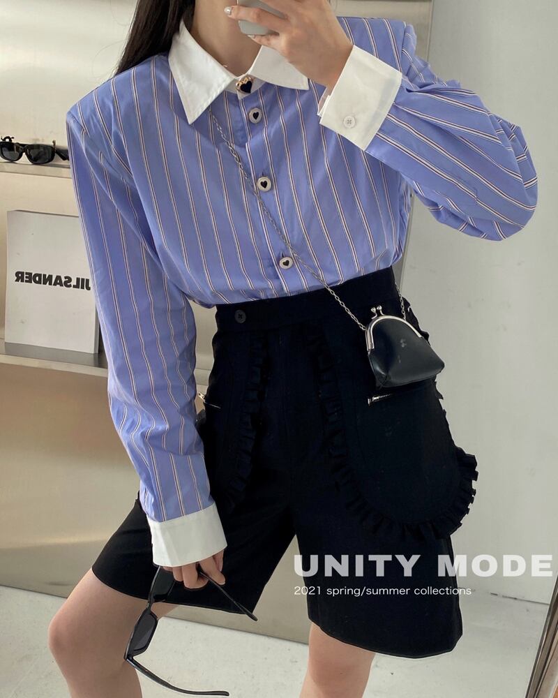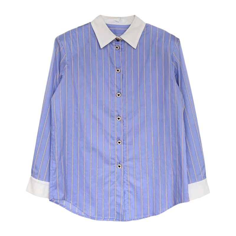 ボタンシャツ カラーストライプベーシックスプリングトップス レディース 春物 ビッグFスモールZ韓国13431276780