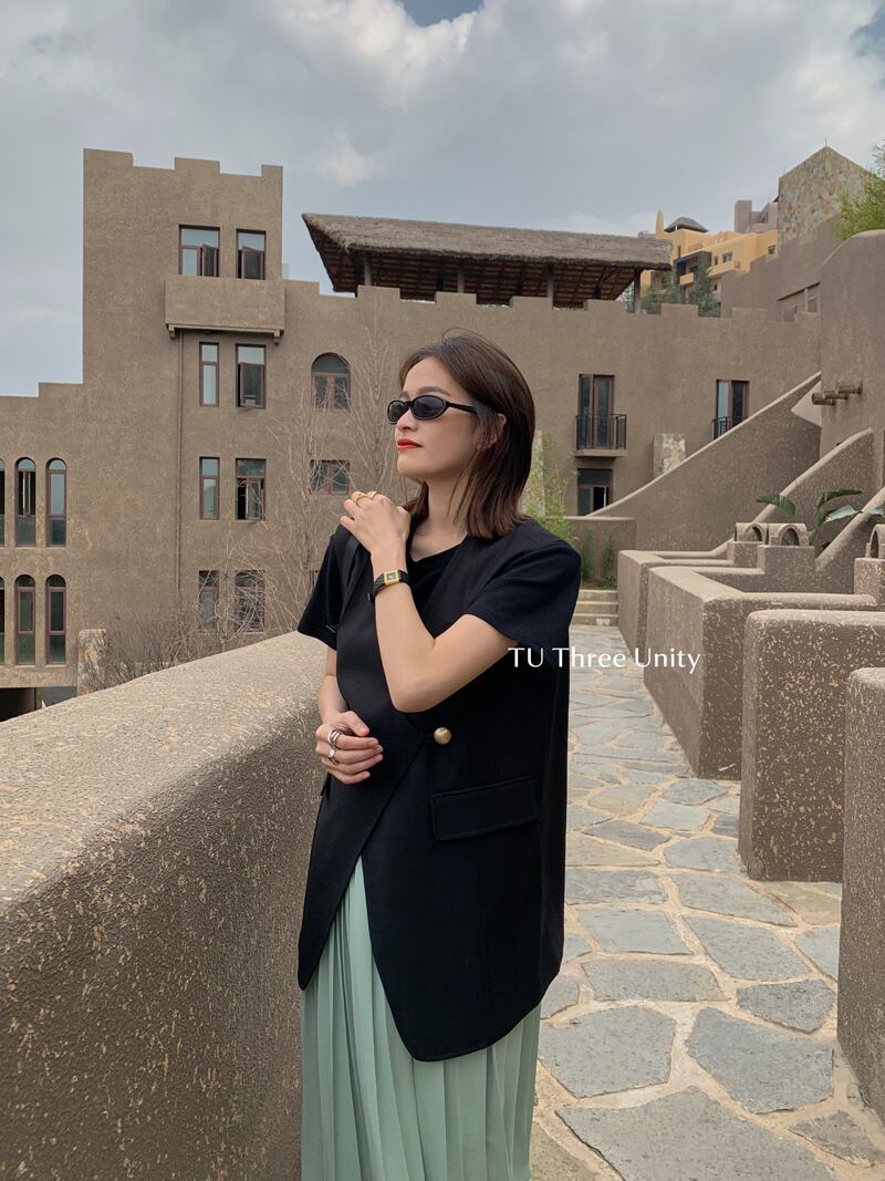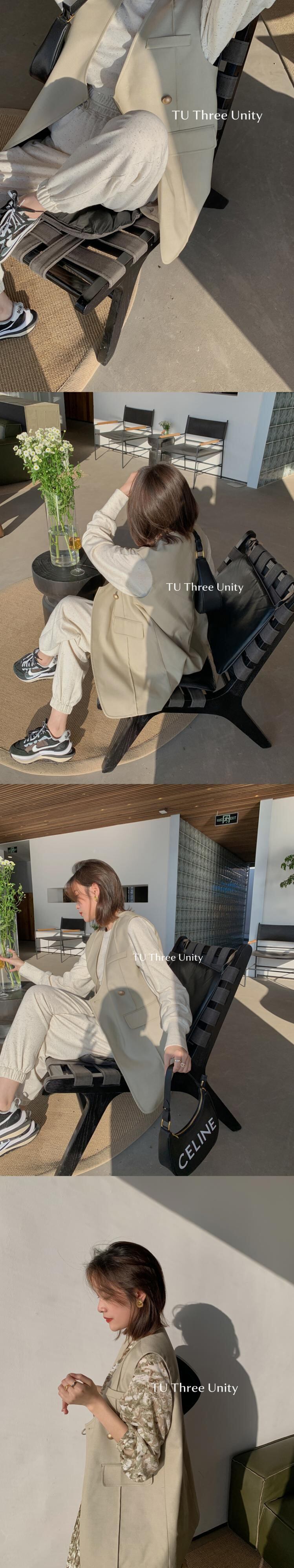 ボタンルーズVネックノースリーブジャケット トップス レディース ビッグFスモールZ韓国14419460371