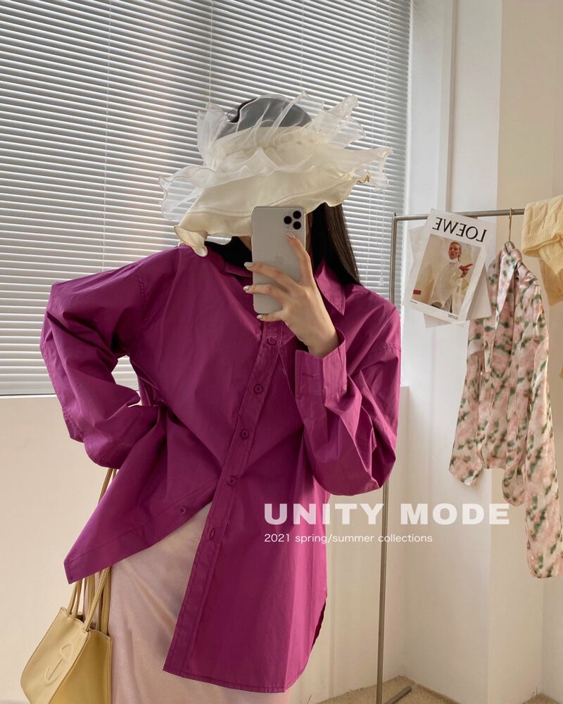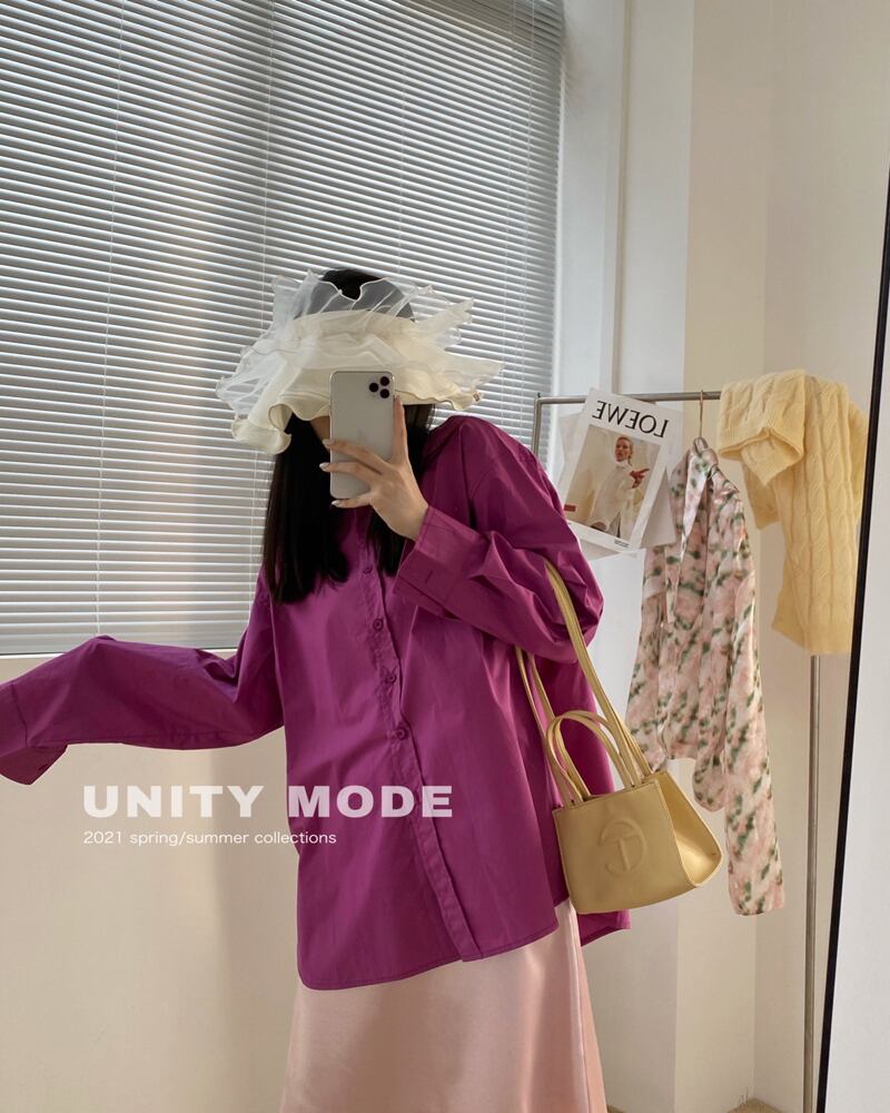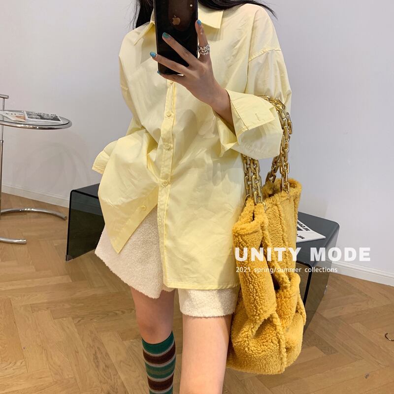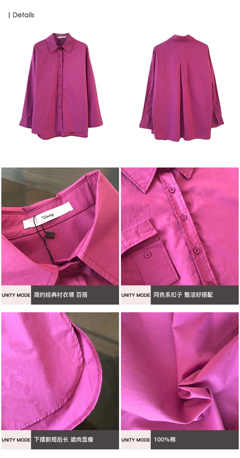 シングルホワイトシャツ ルーズソリッド カラートップス レディース ロング レッド ソリッドカラー パープル ビッグFスモールZ韓国10188728924