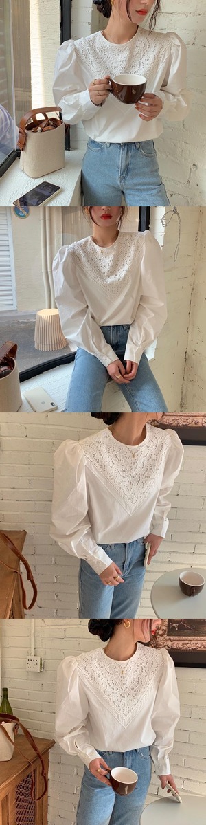 レーススリーブソリッド カラー長袖シャツ トップス レディース ロング ソリッドカラー ビッグFスモールZ韓国57898875354