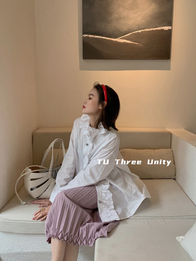 ボタンシャツ レーストップス レディース ロング 大人ガーリー スウィート キュート カジュアル ビッグFスモールZ韓国51987166096