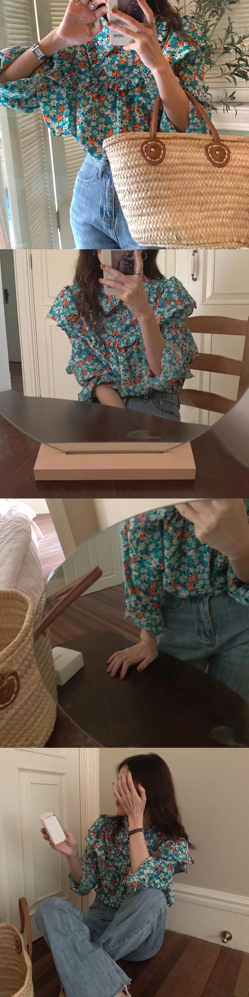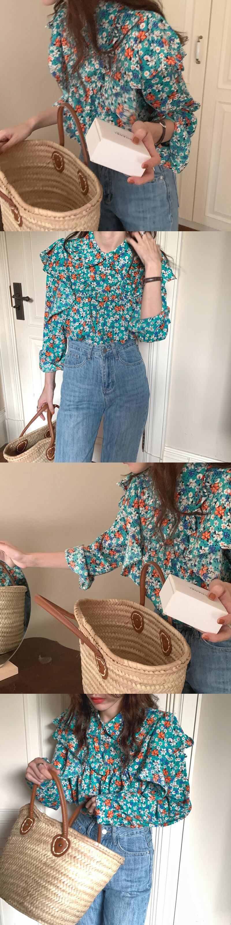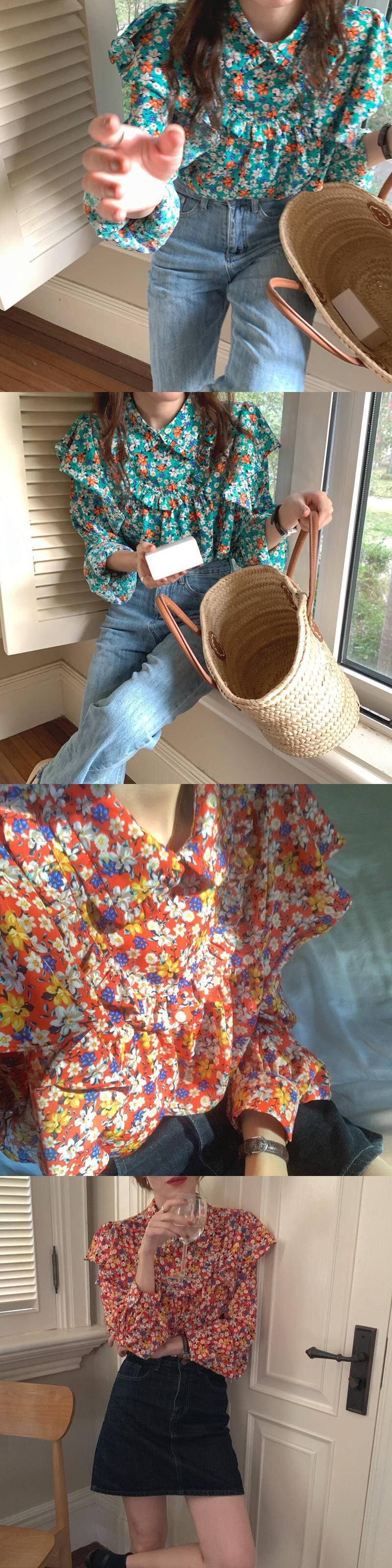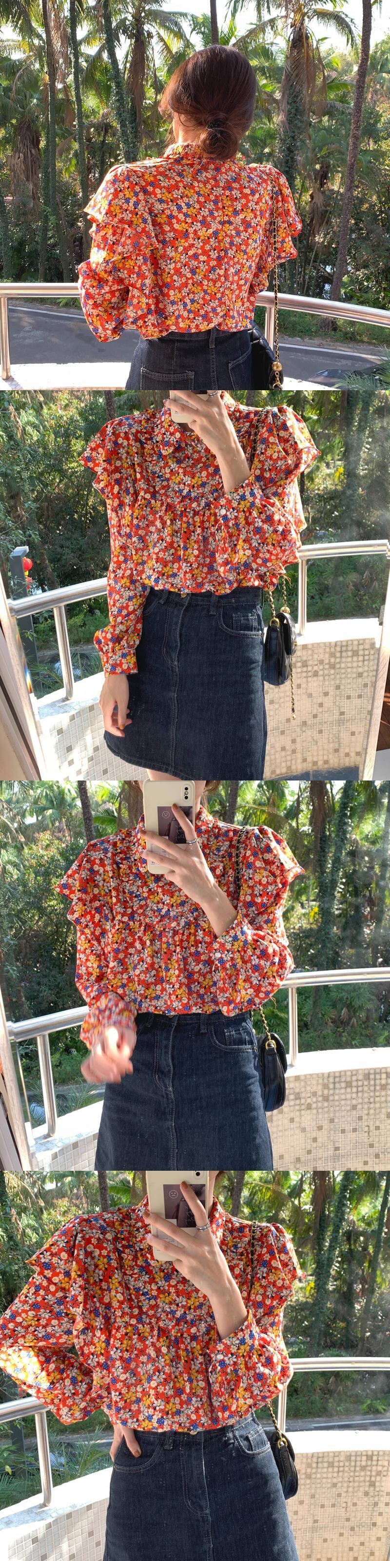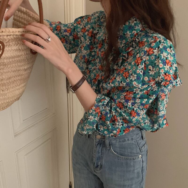 スタンダードフローラルシャツ スタイルカラースプリングトップス レディース ロング レトロ 春物 花柄 ビッグFスモールZ韓国61983352348