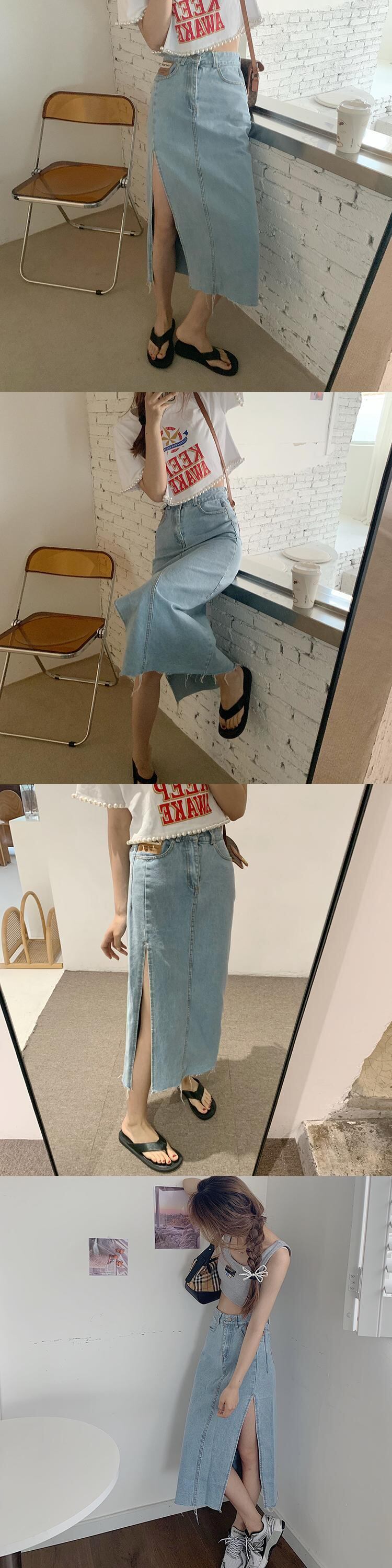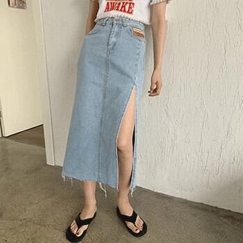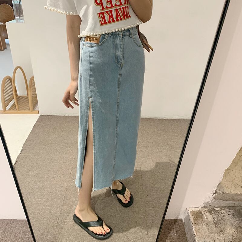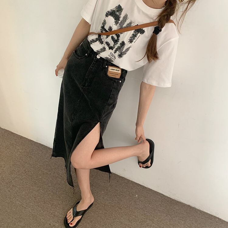ブラックスカート スプリングオータム薄手ハイウェストウェストサイドスリットサマー 春物 夏物 秋物 ビッグFスモールZ韓国43532011049