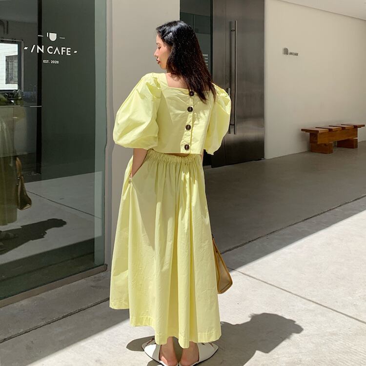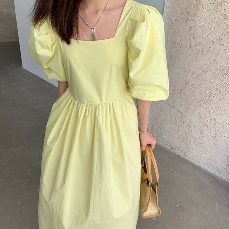 ウェストストレッチルーズドレス サマースタイルカラースリーブスカート エラスティック 伸縮 夏物 スクウェア ビッグFスモールZ韓国77995091532
