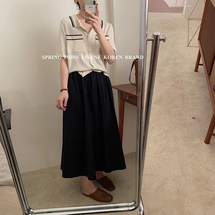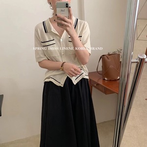 カラーニットトップス 薄手カジュアルブラックホワイトシャツ ビッグFスモールZ韓国36176202103