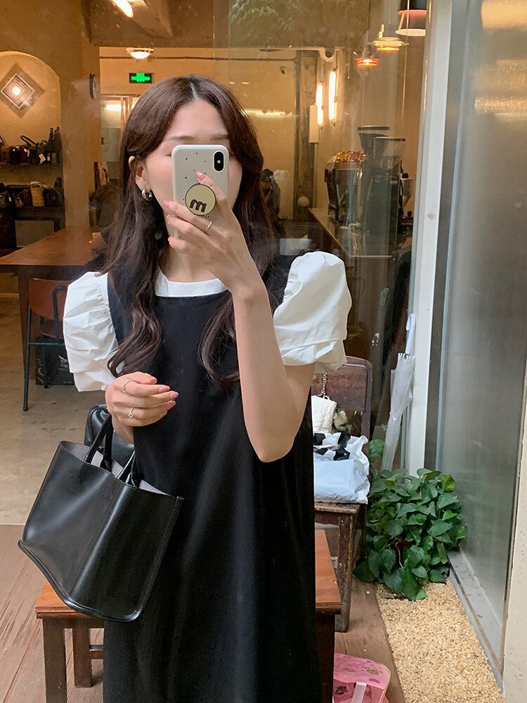 シャツ ドレス サマールーズスリーブカラースカート トップス 夏物 ノースリーブ スクウェア ビッグFスモールZ韓国94775016311