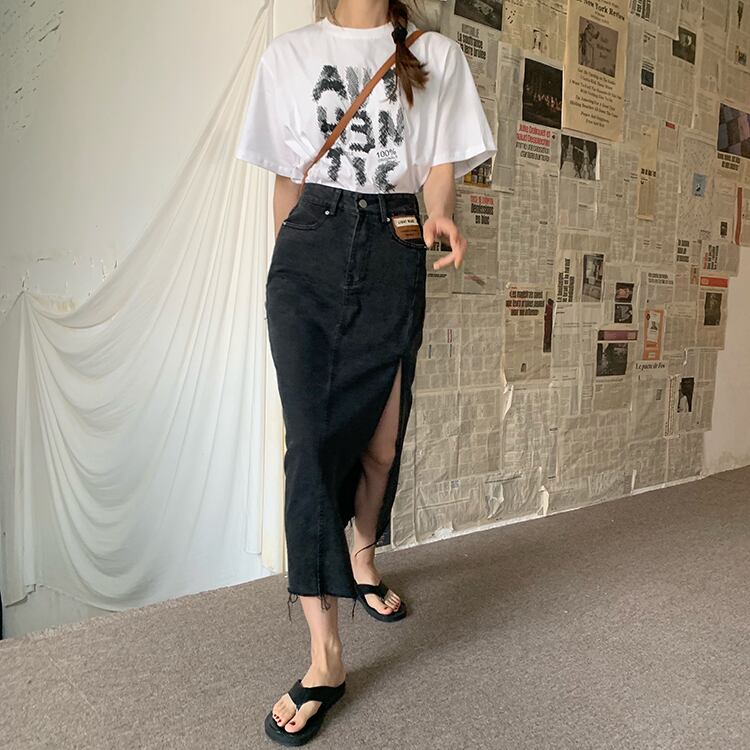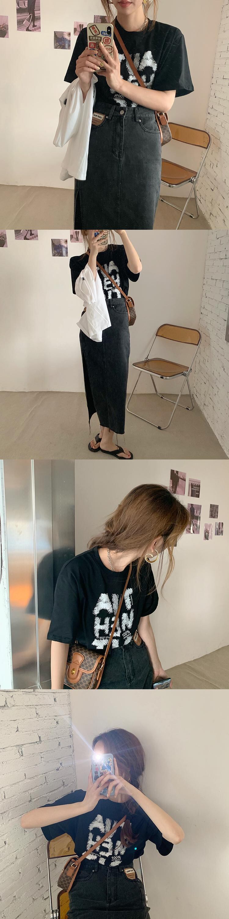 プリントTシャツ サマールーズラウンドネックブラックトップス 夏物 Oネック ビッグFスモールZ韓国92984707606