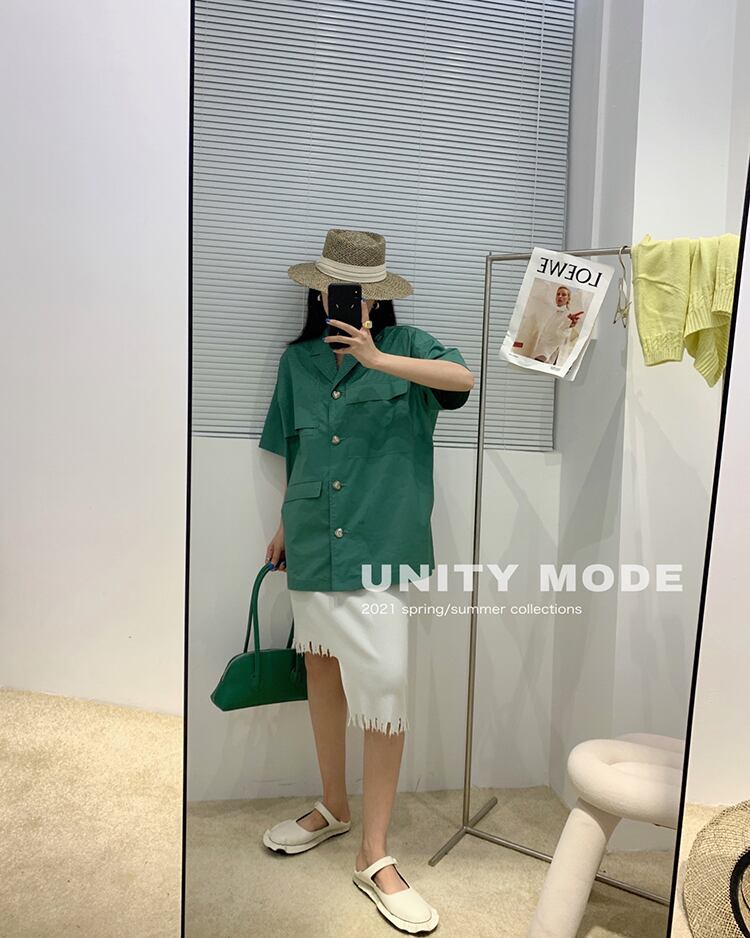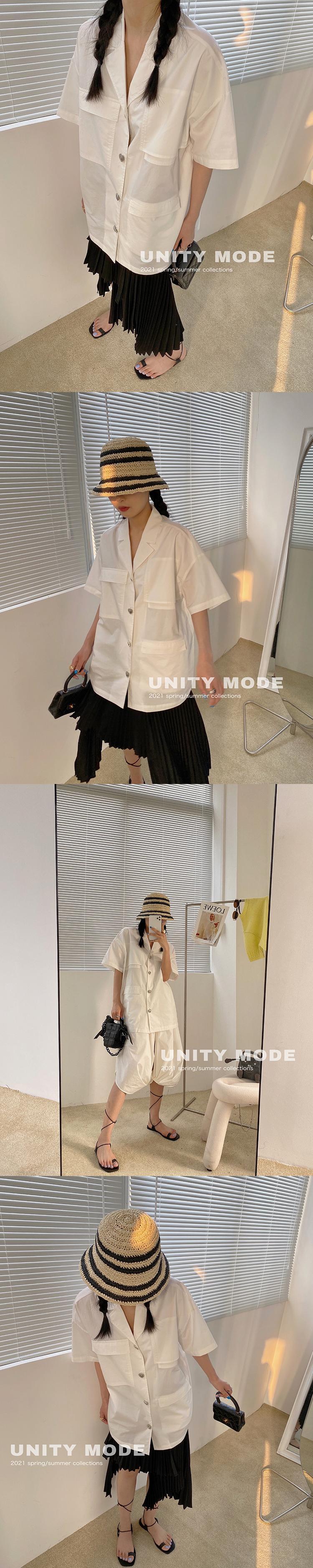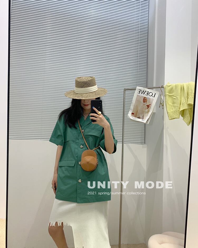 ボタン半袖スリーブシャツ レディースサマールーズアウターロングジャケット ショート ハーフスリーブ 夏物 ビッグFスモールZ韓国6632343190