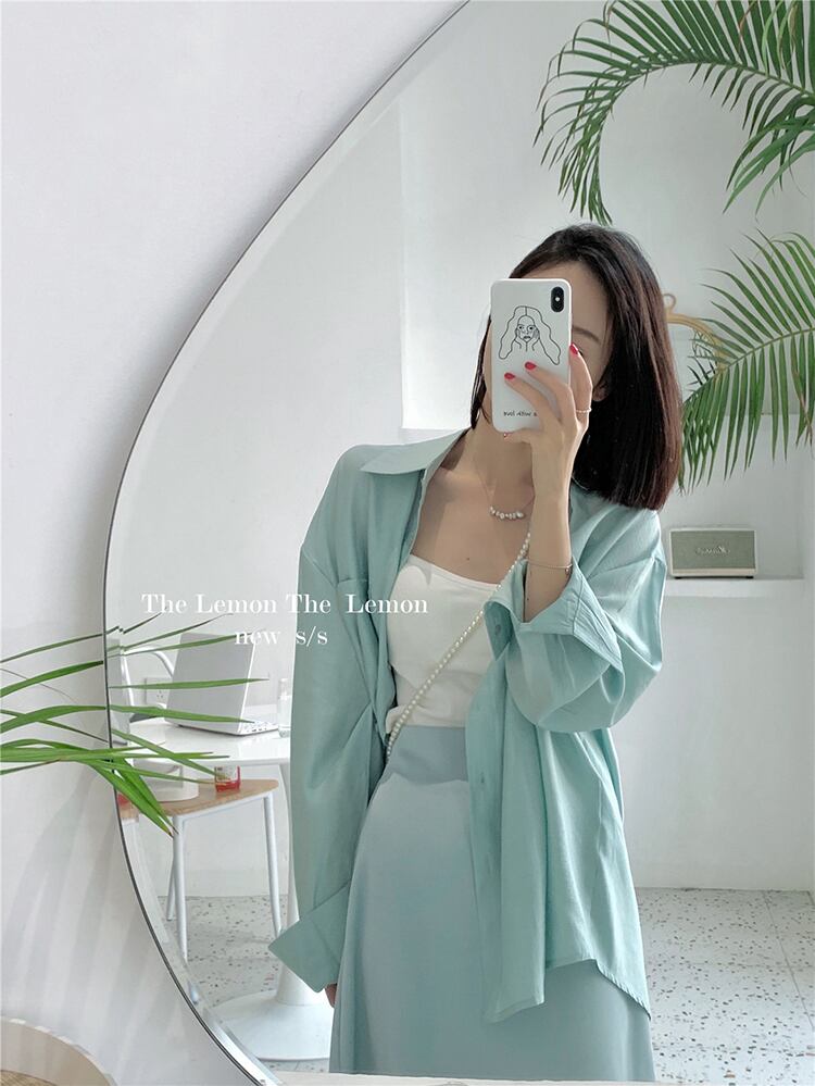シャツ ジャケット スプリングオータムルーズブラックホワイトサマー ロング 春物 夏物 秋物 ビッグFスモールZ韓国19971878466