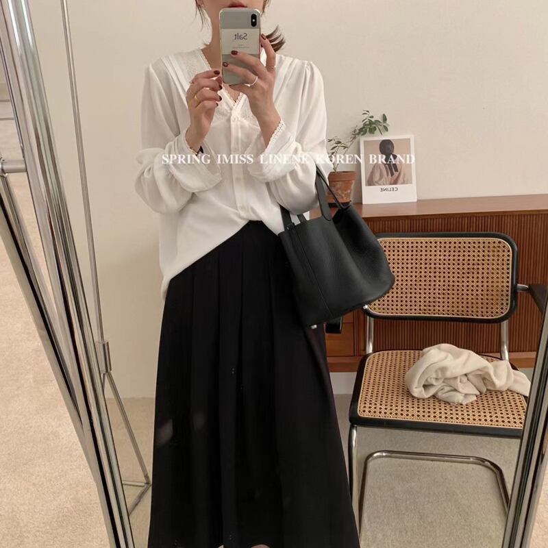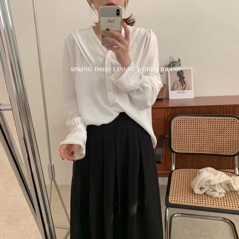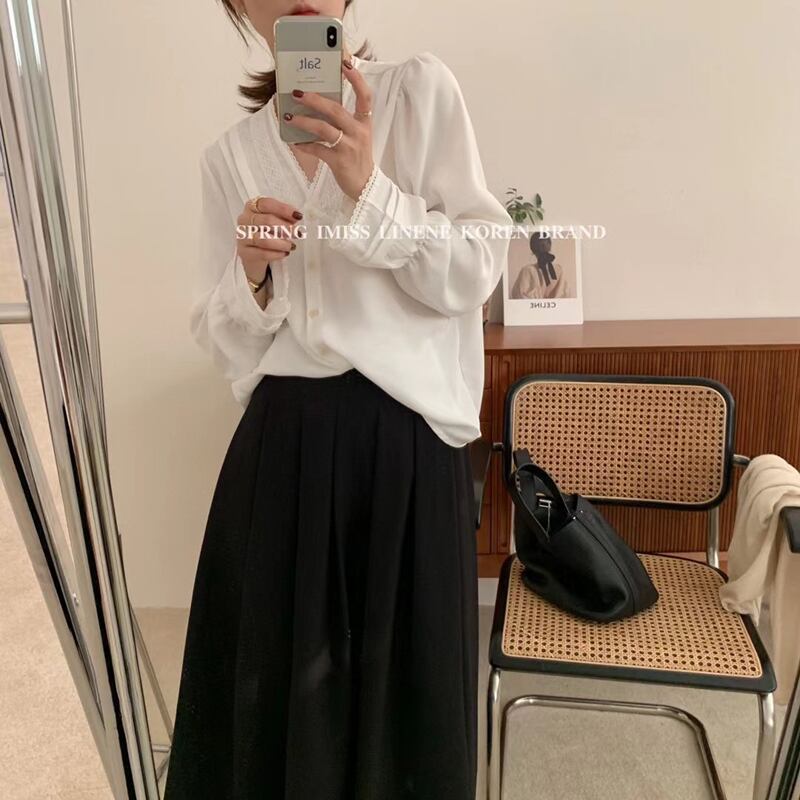 レースVネックシャツ 長袖スリーブトップス スプリングレディース ロング 春物 ビッグFスモールZ韓国71342856596