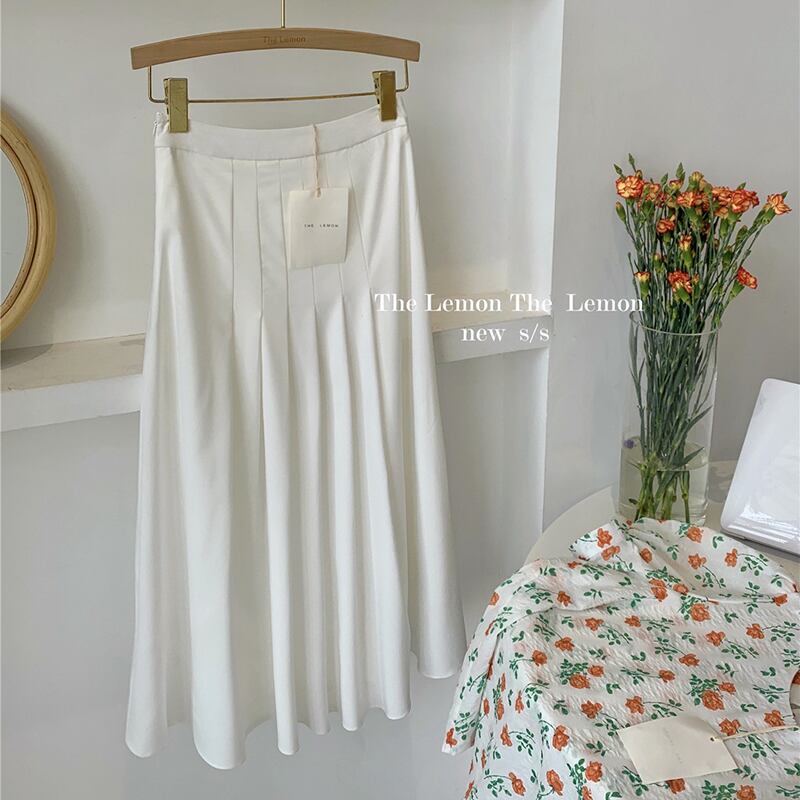 プリーツAラインスカート サマースタイルハイウェストホワイト 夏物 ビッグFスモールZ韓国43310067677