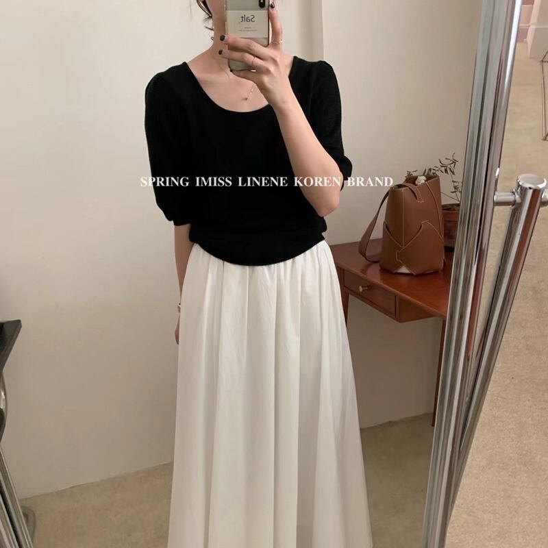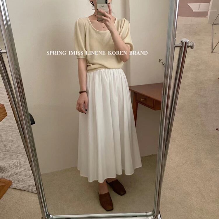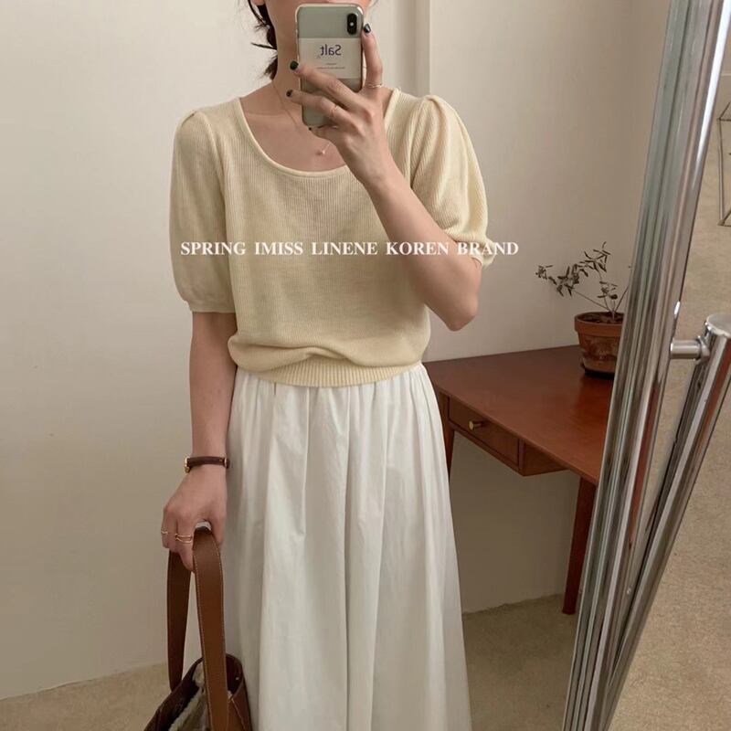 ニット半袖スリーブトップス サマースタイルルーズラウンドネックソリッド Tシャツ ショート ハーフスリーブ 夏物 Oネック ソリッドカラー ビッグFスモールZ韓国35782081149