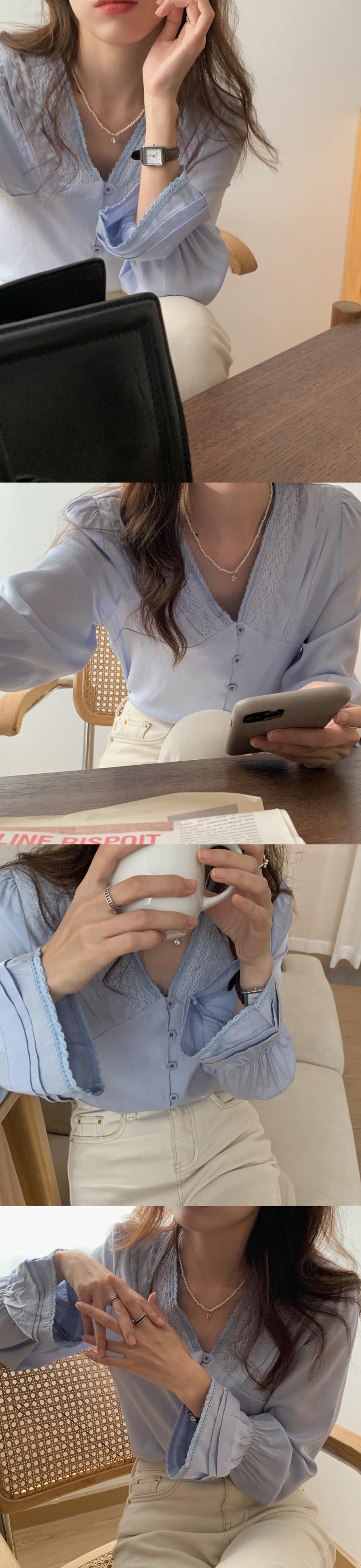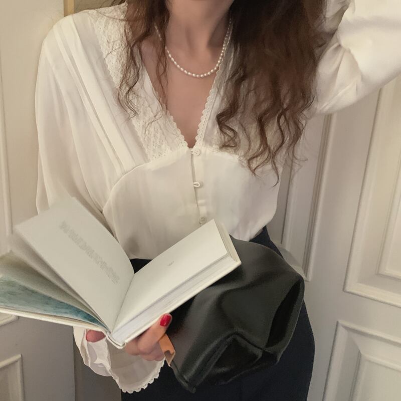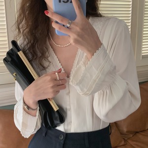 レースVネックシャツ スリーブスプリングトップス レディース 春物 ビッグFスモールZ韓国97038105041