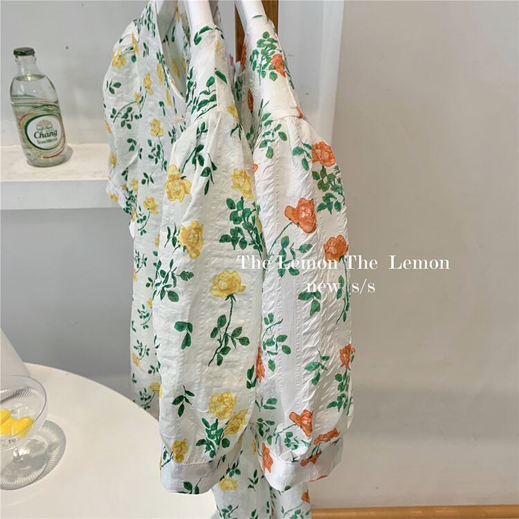 フローラルシャツ レディースサマースタイルルーズラウンドネックスリーブトップス 夏物 花柄 Oネック ビッグFスモールZ韓国80600373421
