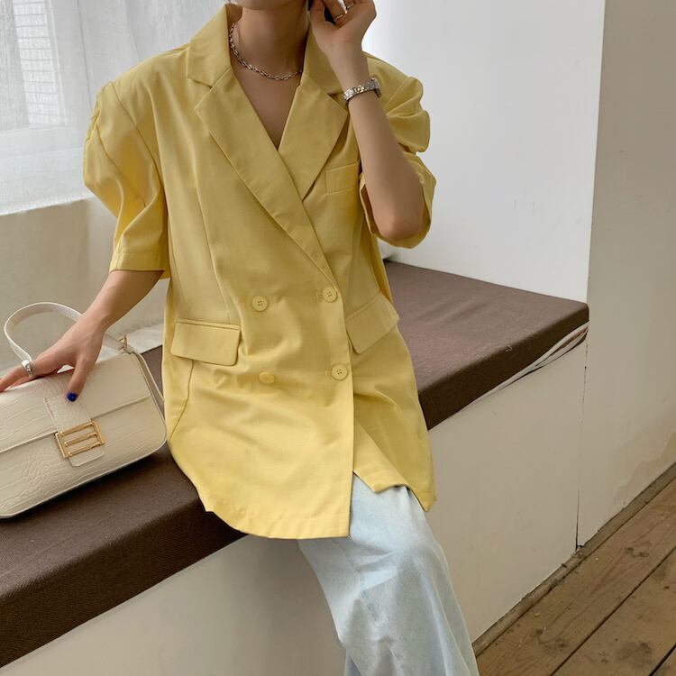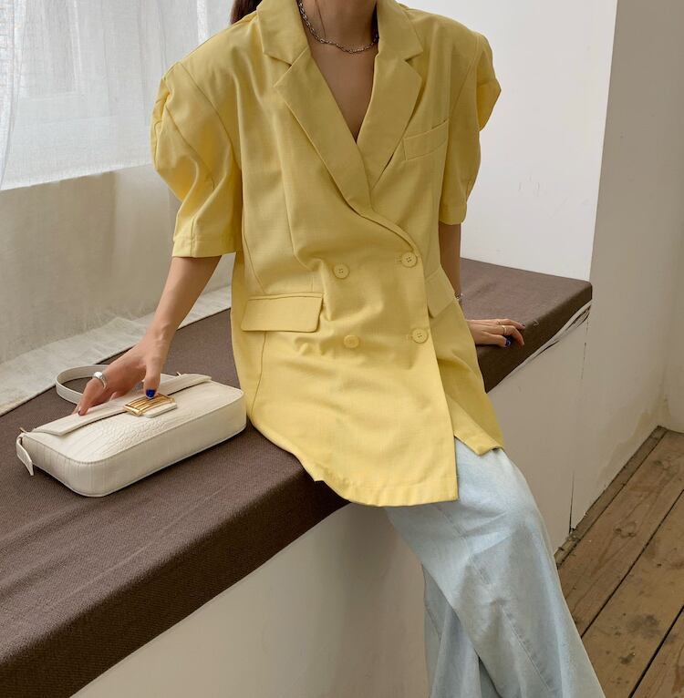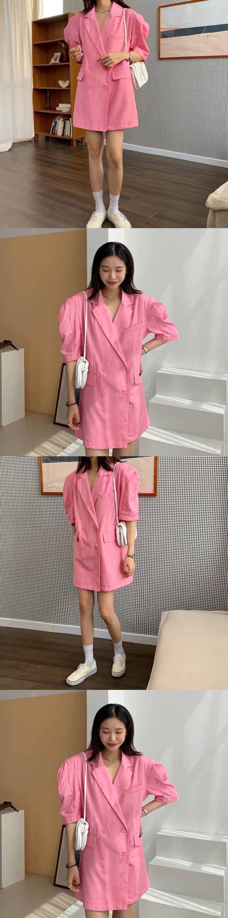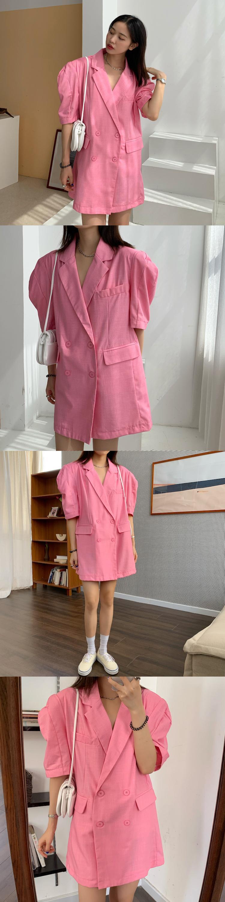ジャケット スプリングサマーロングルーズダブルブレスト ピンク 春物 夏物 ビッグFスモールZ韓国64135166829