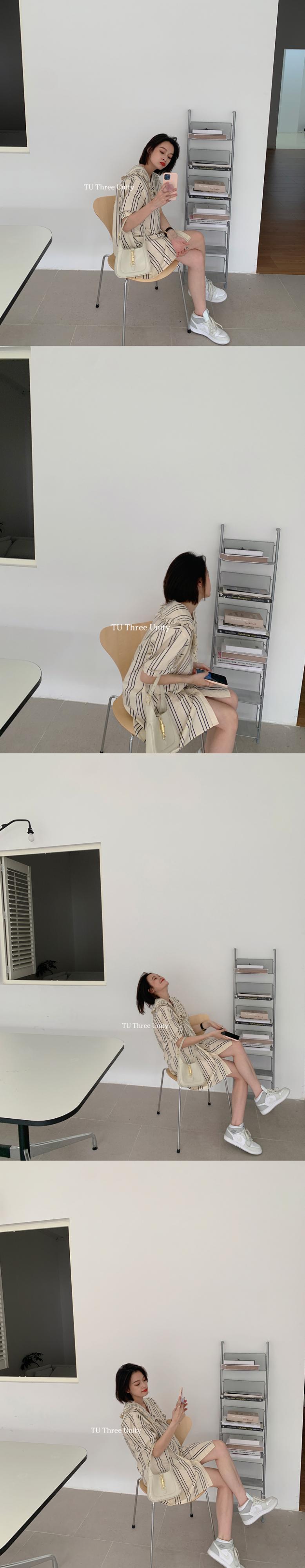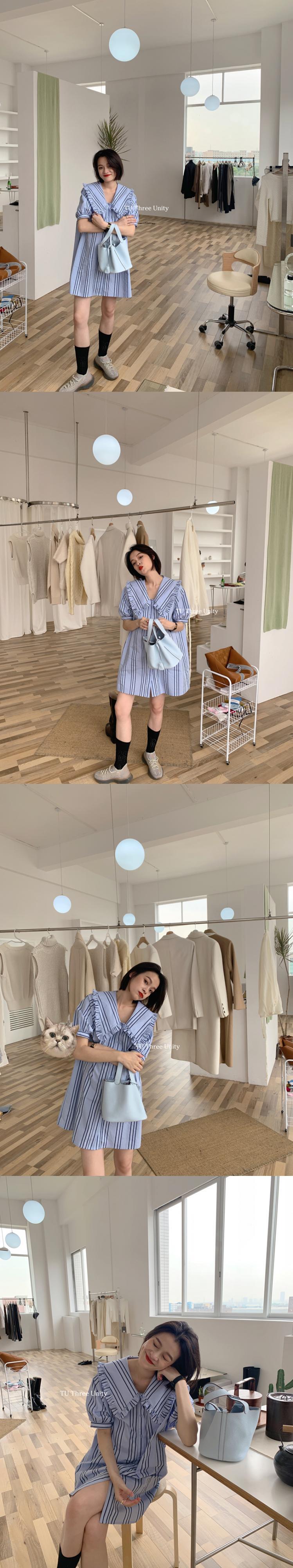 シャツ ドレス レースカラールーズ長袖スリーブストライプ ロング ビッグFスモールZ韓国8314602126
