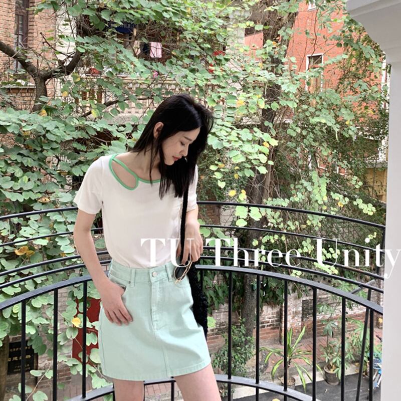 ストラップレスTシャツ サマースタイルカラー半袖スリーブトップス ショート ハーフスリーブ 夏物 ビッグFスモールZ韓国58396241041