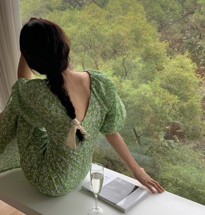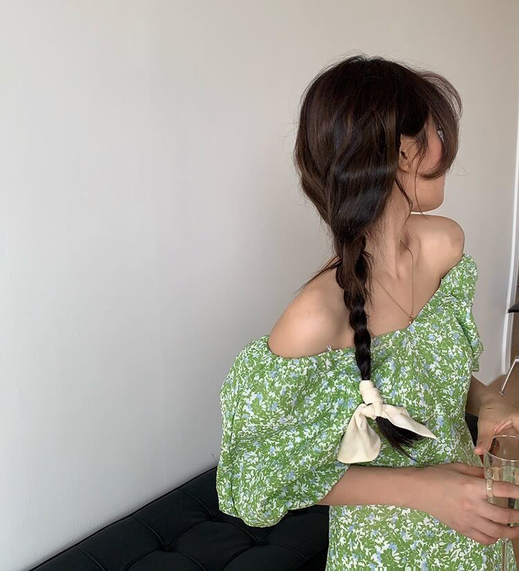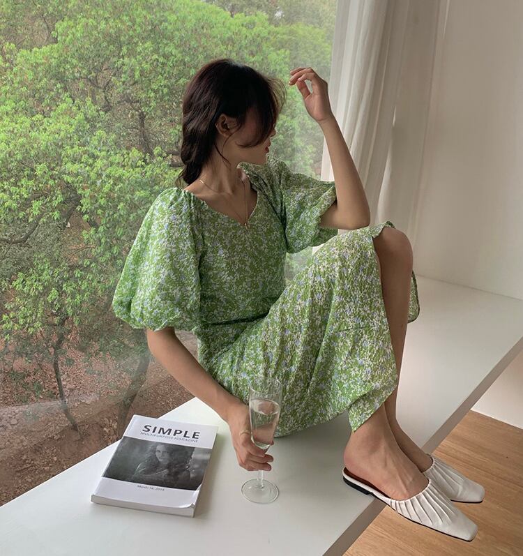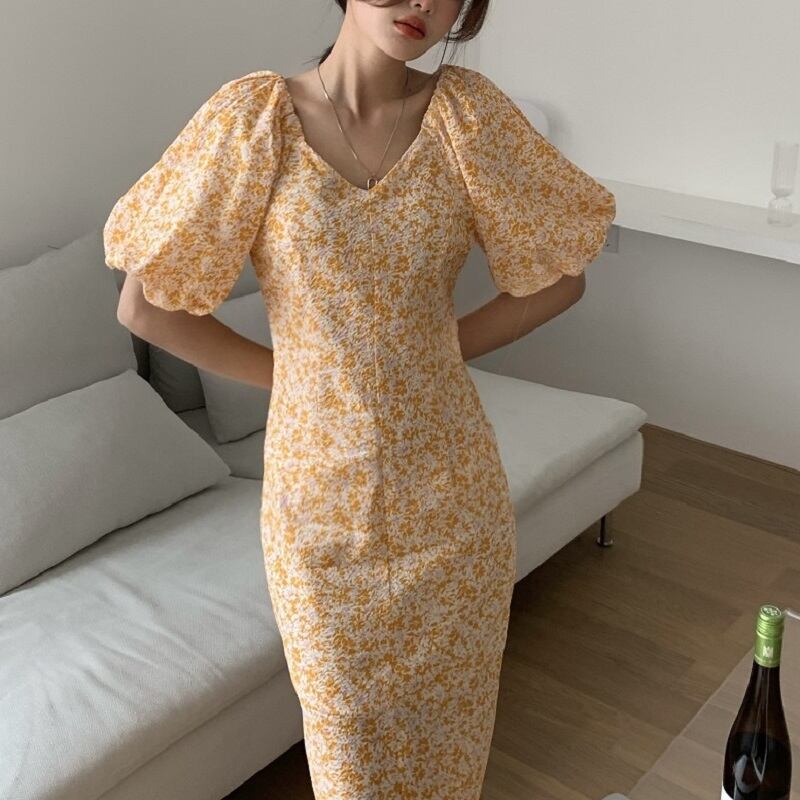 スリムホルタードレス サマースタイルスリーブVネックフローラル 夏物 花柄 ビッグFスモールZ韓国23372813479