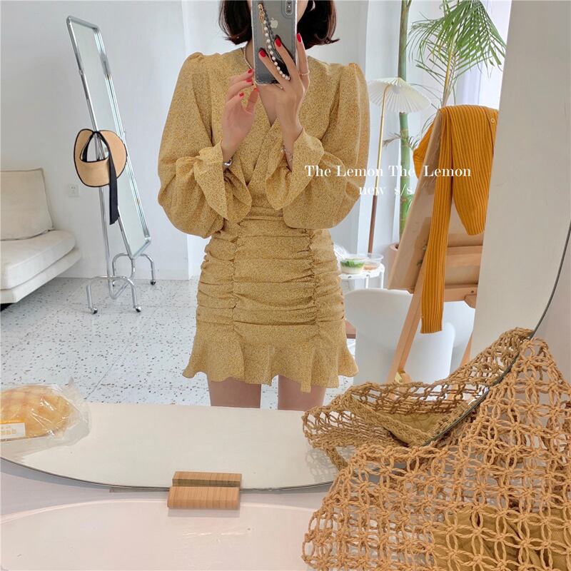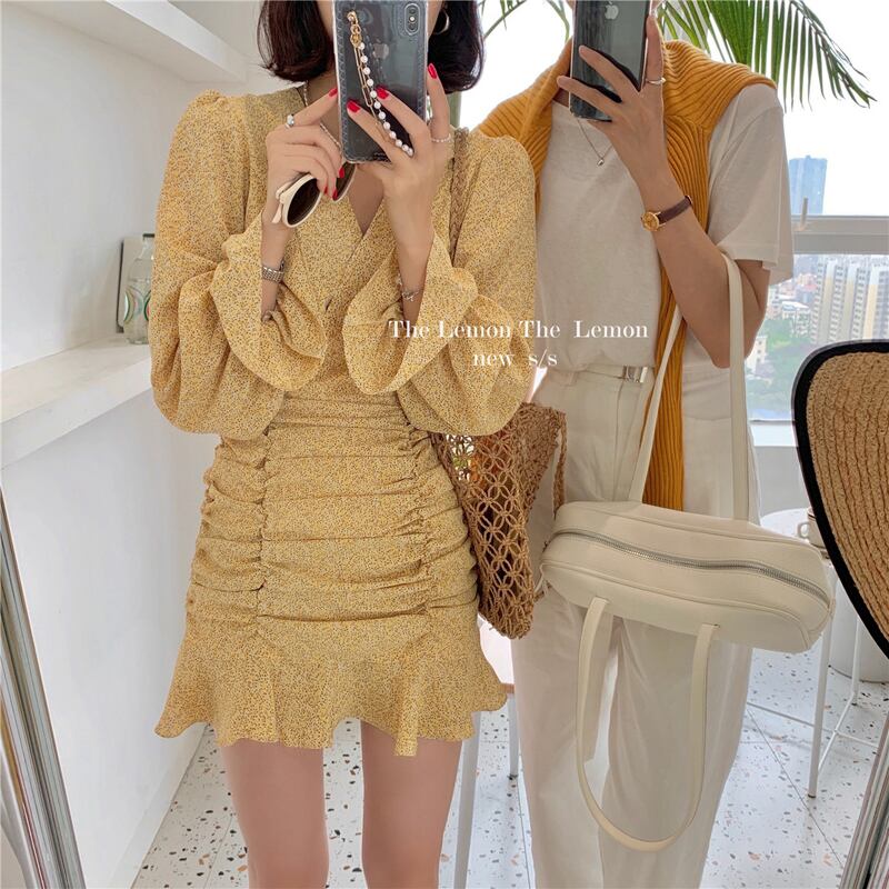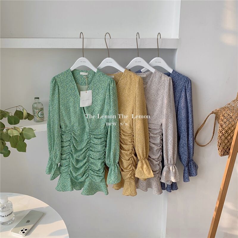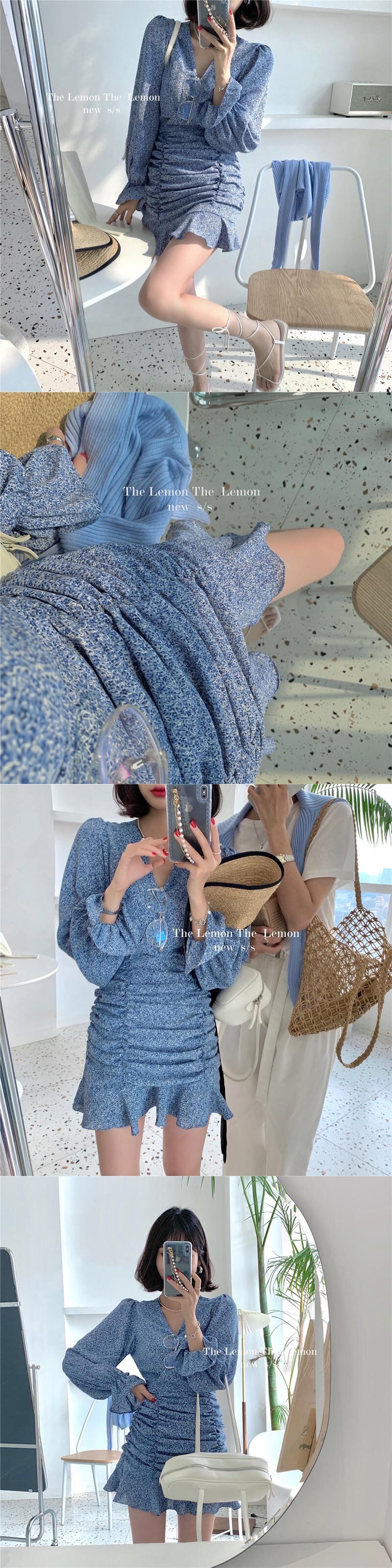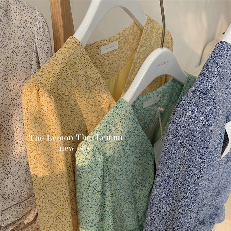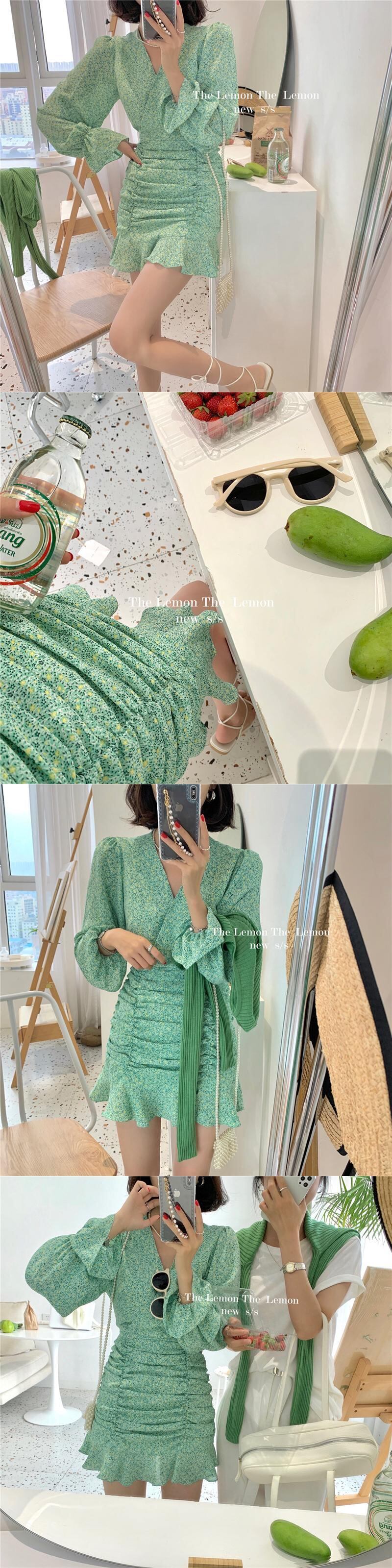 フローラルスカート 薄手Vネックドレス ショート ロング 花柄 ビッグFスモールZ韓国85164043377