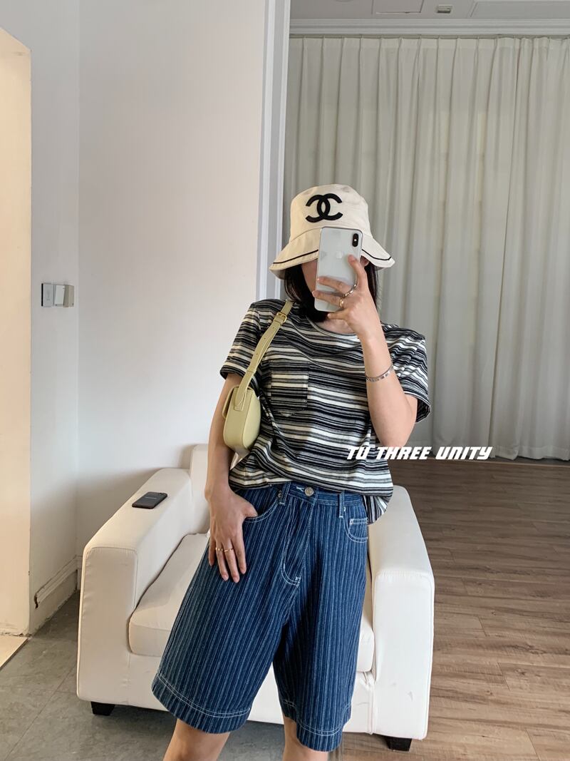 ショーツ サマーブルーハイウェストウェストルーズワイドレッグパンツ 夏物 ブルマー ワイドパンツ ビッグFスモールZ韓国36995828369