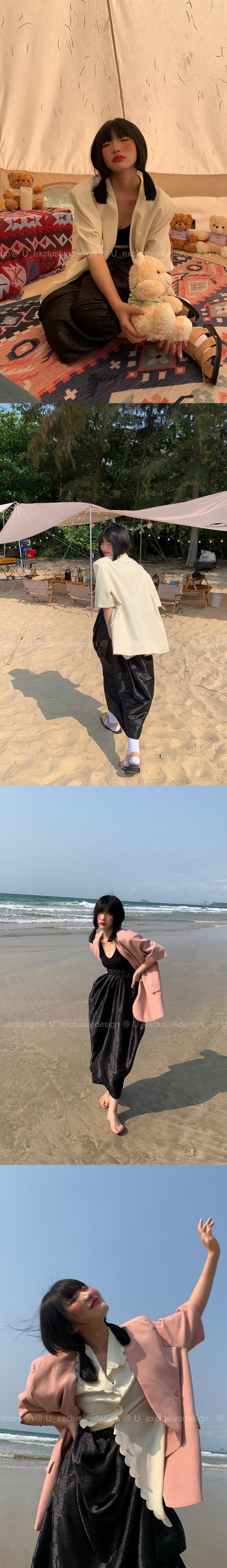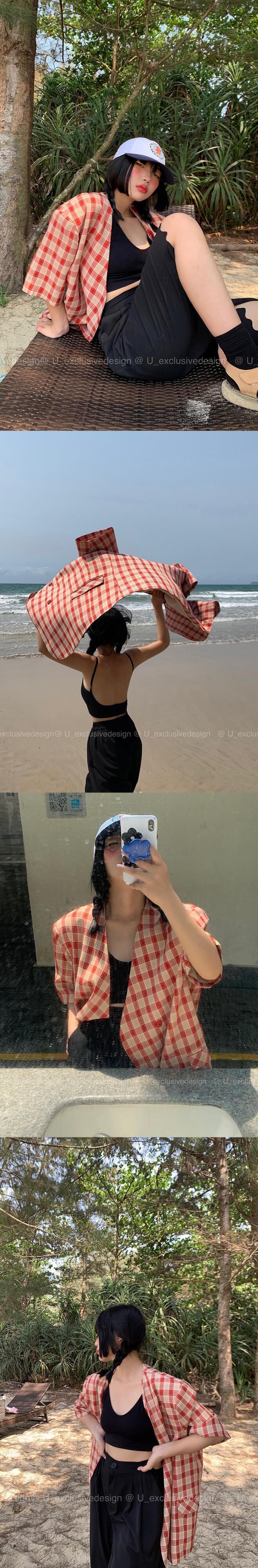 格子柄ジャケット サマーロングルーズ半袖スリーブブラック ショート ハーフスリーブ 夏物 ビッグFスモールZ韓国34995680284