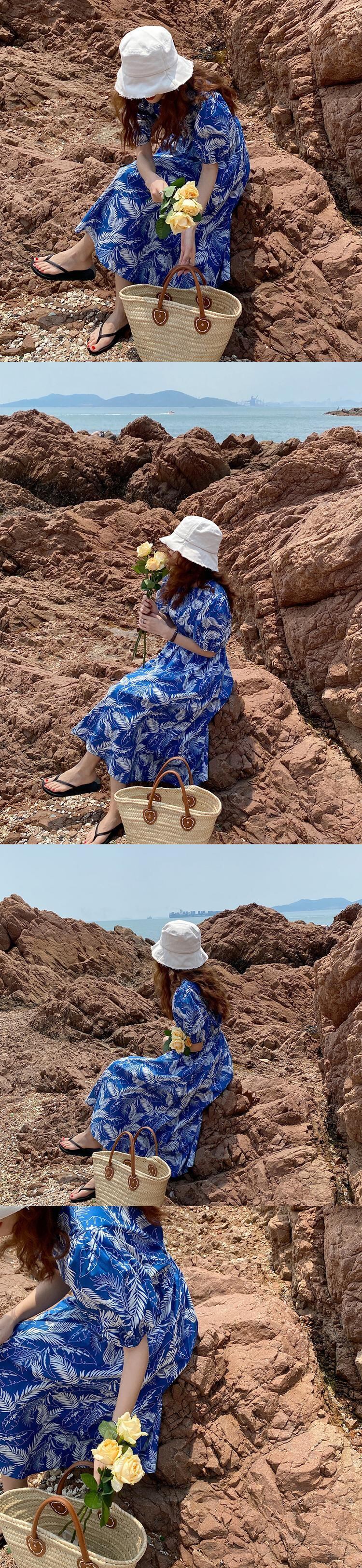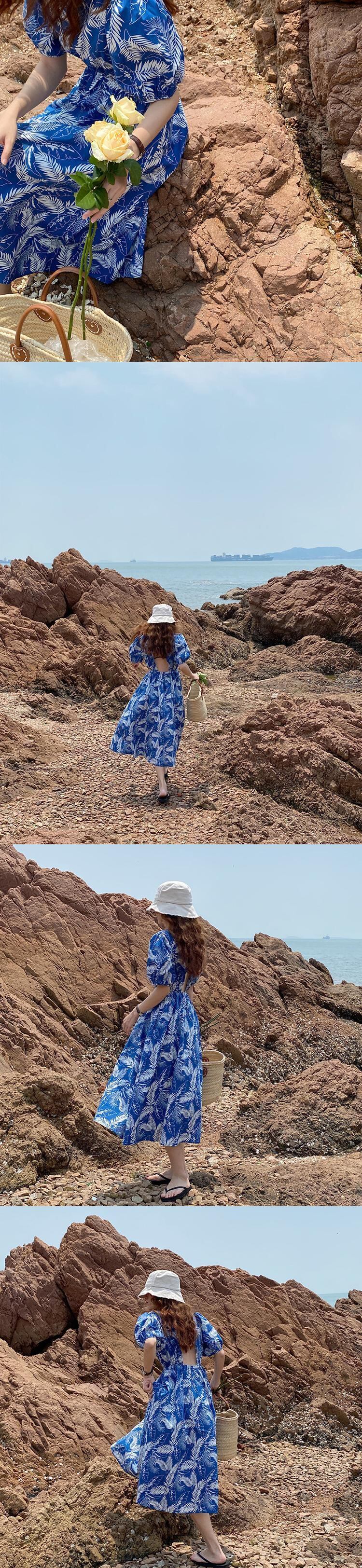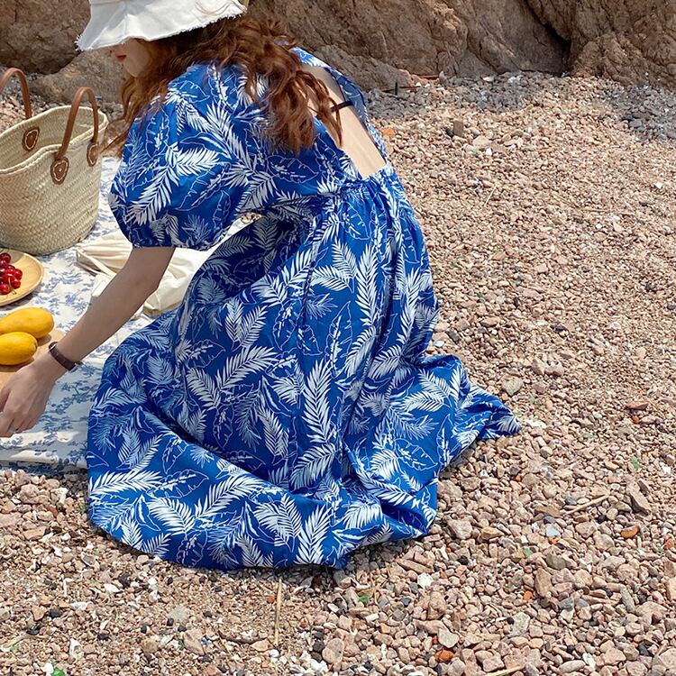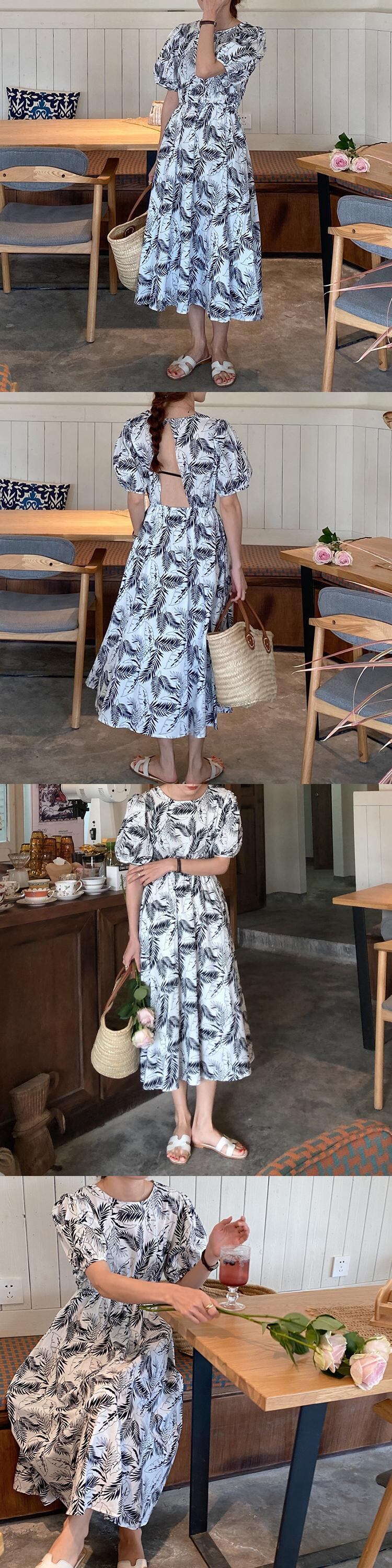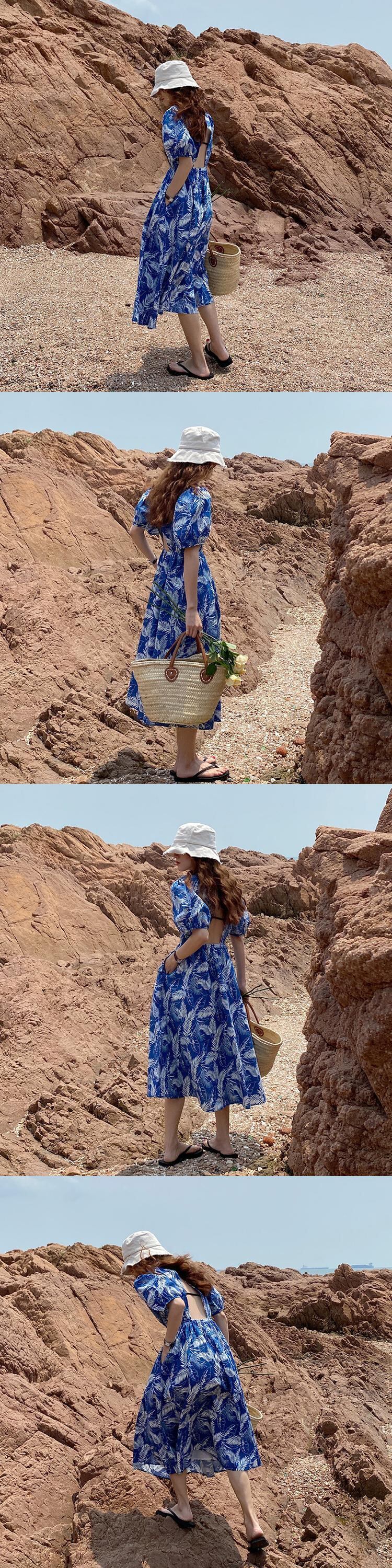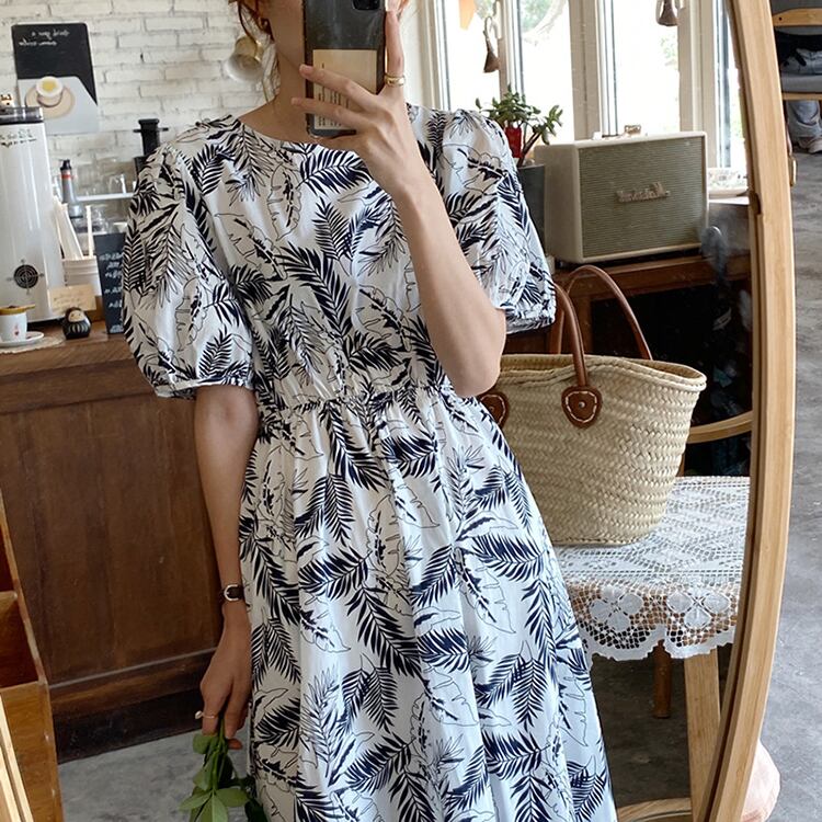 バックレスドレス サマー薄手スタイルロングラウンドネック半袖スリーブスカート ショート ハーフスリーブ 夏物 Oネック ビッグFスモールZ韓国99057469709