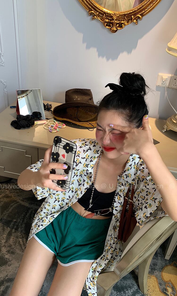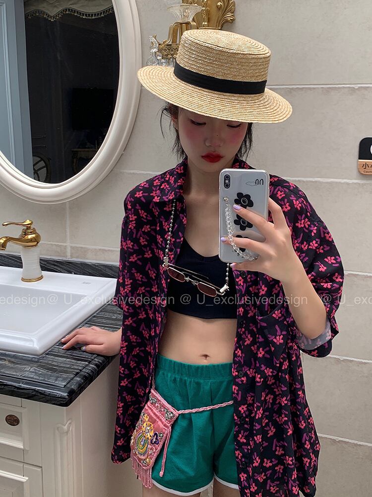 スタイルブラックフローラルシャツ サマー薄手ルーズスタンダード レトロ 夏物 花柄 ビッグFスモールZ韓国62657219060