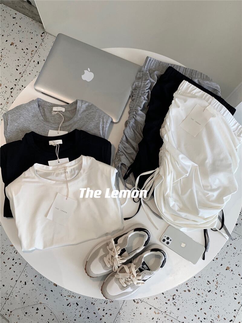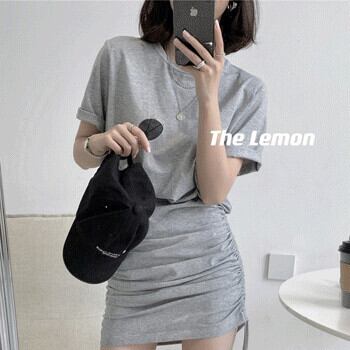 ラウンドネックTシャツ トップス ギャザースカート Oネック ビッグFスモールZ韓国78130390741