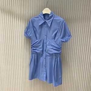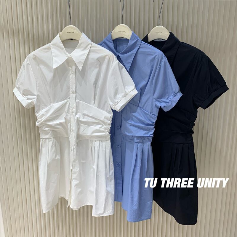 ホワイトシャツ スカート サマースタイルカジュアルルーズスリムショートプリーツハイウェストウェストドレス 夏物 ビッグFスモールZ韓国37325298112