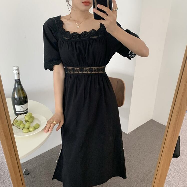 ドレス サマーハイウェストレースカラースカート 夏物 スクウェア ステッチ ビッグFスモールZ韓国98215576961